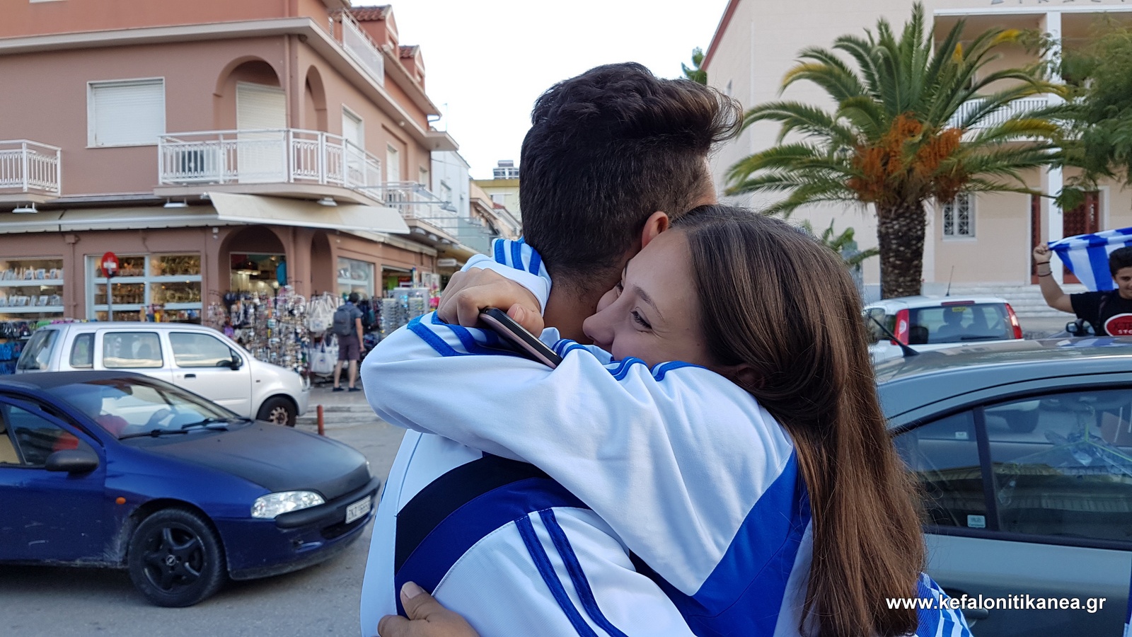 Οι φίλοι του Βαγγέλη έσπευσαν να τον προϋπαντήσουν με αυτοκίνητα και μηχανάκια (έσπασαν πολλά μοτέρ σήμερα…). Γύρω στις 5.00 το απόγευμα ήρθαν στο Αργοστόλι και έγιναν όλοι ένα κουβάρι από τις αγκαλιές, τα φιλιά και τους πανηγυρισμούς.