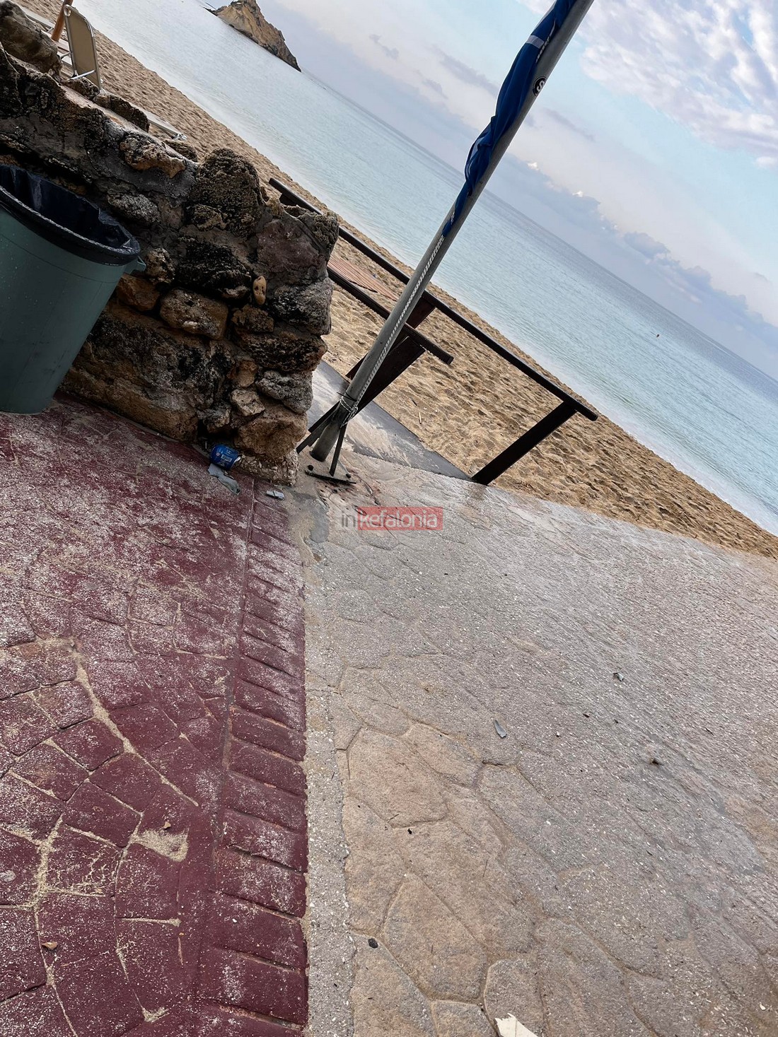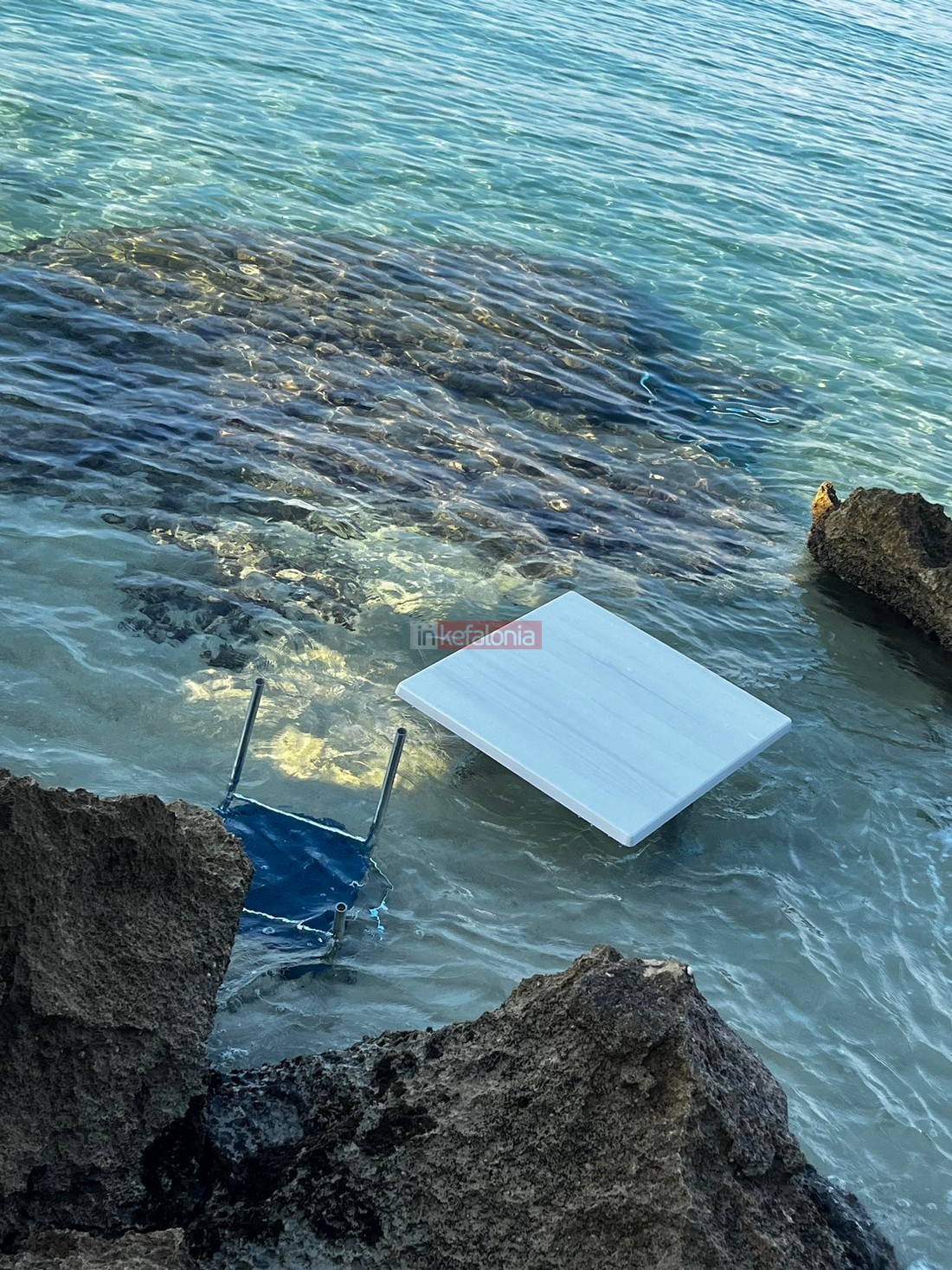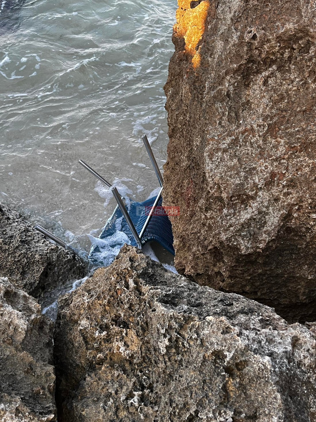 Από τους βανδαλισμούς δεν γλίτωσαν τραπέζια και καρέκλες που υπήρχαν έξω από το σημείο της έκρηξης, τα οποία ο δράστης ή οι δράστες τα έριξαν στην θάλασσα !