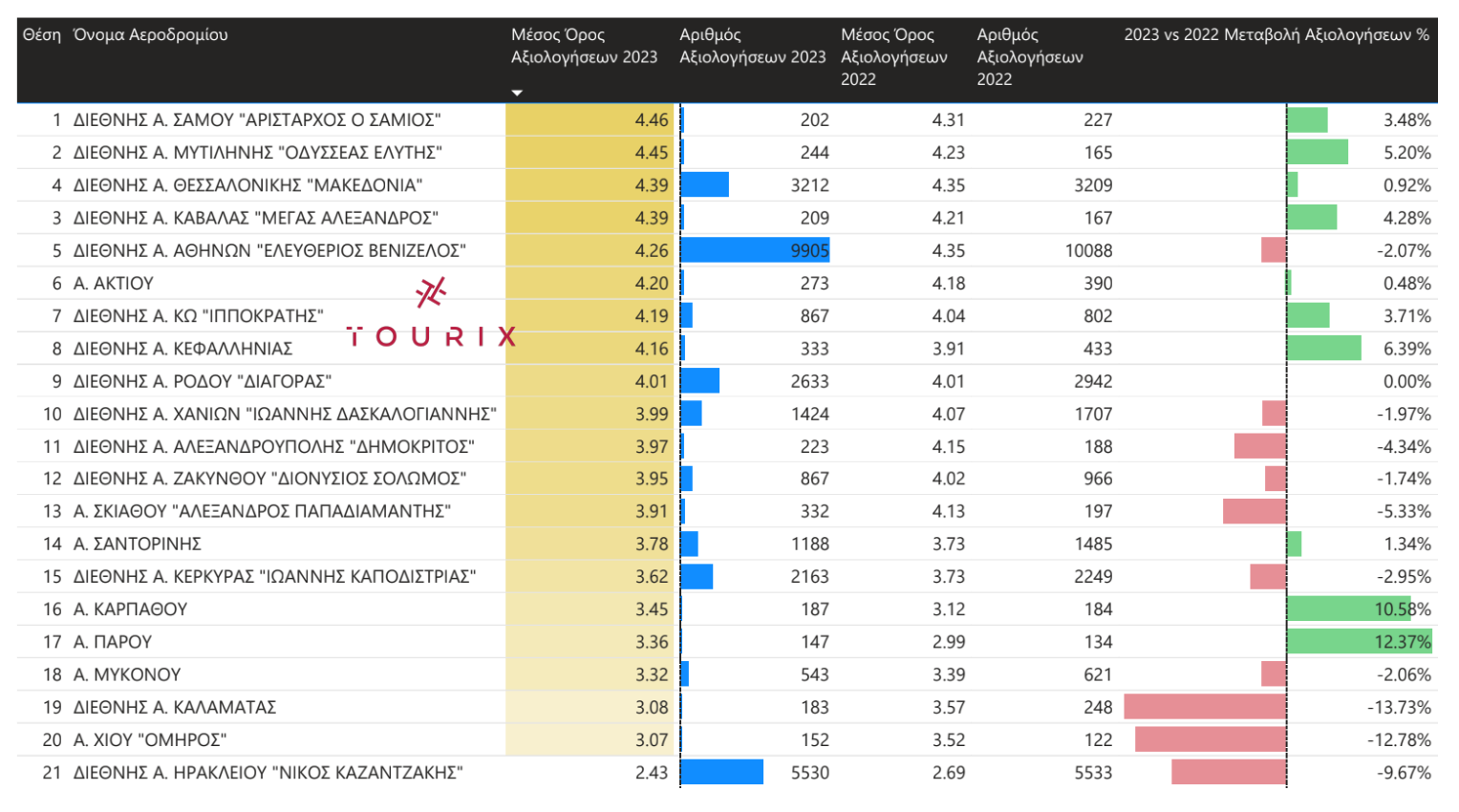 Η νέα έρευνα της Tourix επικεντρώνεται στις αξιολογήσεις που έλαβαν τα ελληνικά αεροδρόμια με την μεγαλύτερη επιβατική κίνηση για το έτος 2023.