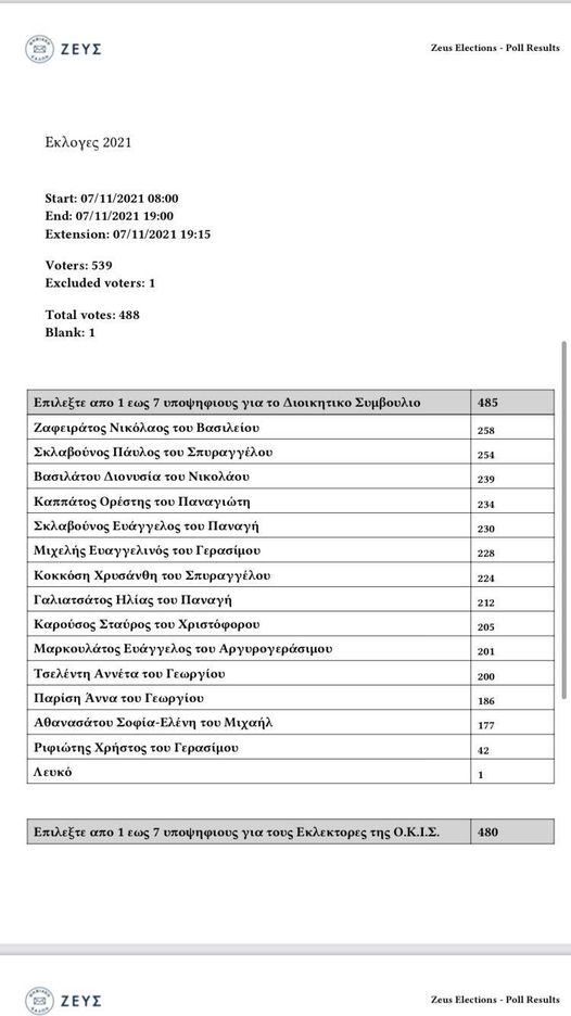 Αγαπητοί συμπατριώτισσες και συμπατριώτες, σε συνέχεια των αρχαιρεσιών της 7ης Νοεμβρίου 2021 για την εκλογή ΔΣ, Εξελεγκτικής Επιτροπής και εκλεκτόρων ΟΚΙΣ,