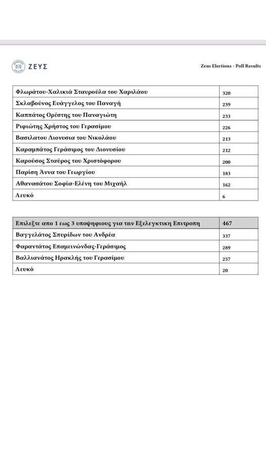 Κατωτέρω θα βρείτε τα αποτελέσματα, όπως ανακοινώθηκαν από την Εφορευτική Επιτροπή: