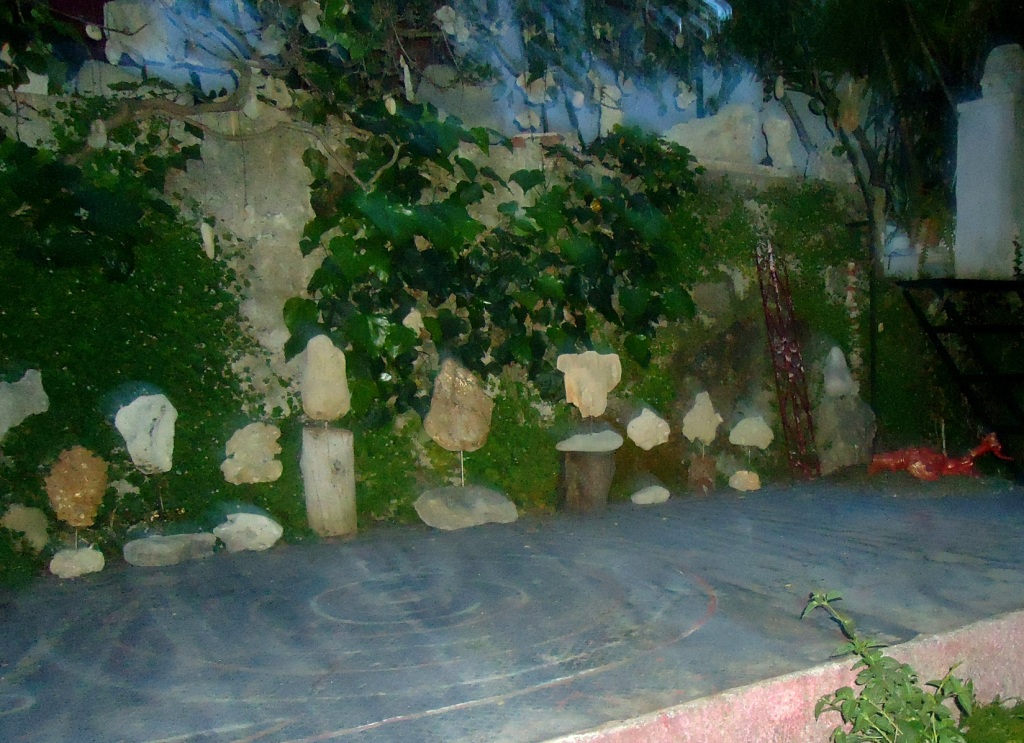 Οι έτοιμες αυτές φόρμες, σπαράγματα ερειπίων, παραθαλάσσια λίθινα ευρήματα, αλίκτυπα ξύλα, συντίθενται με αισθητική λιτότητα και απλότητα και αποκτούν έντονη εκφραστική δύναμη.Την έκθεση έχουν επισκεφθεί και ξεναγηθεί από τον καλλιτέχνη φιλότεχνοι και καλλιτέχνες.
