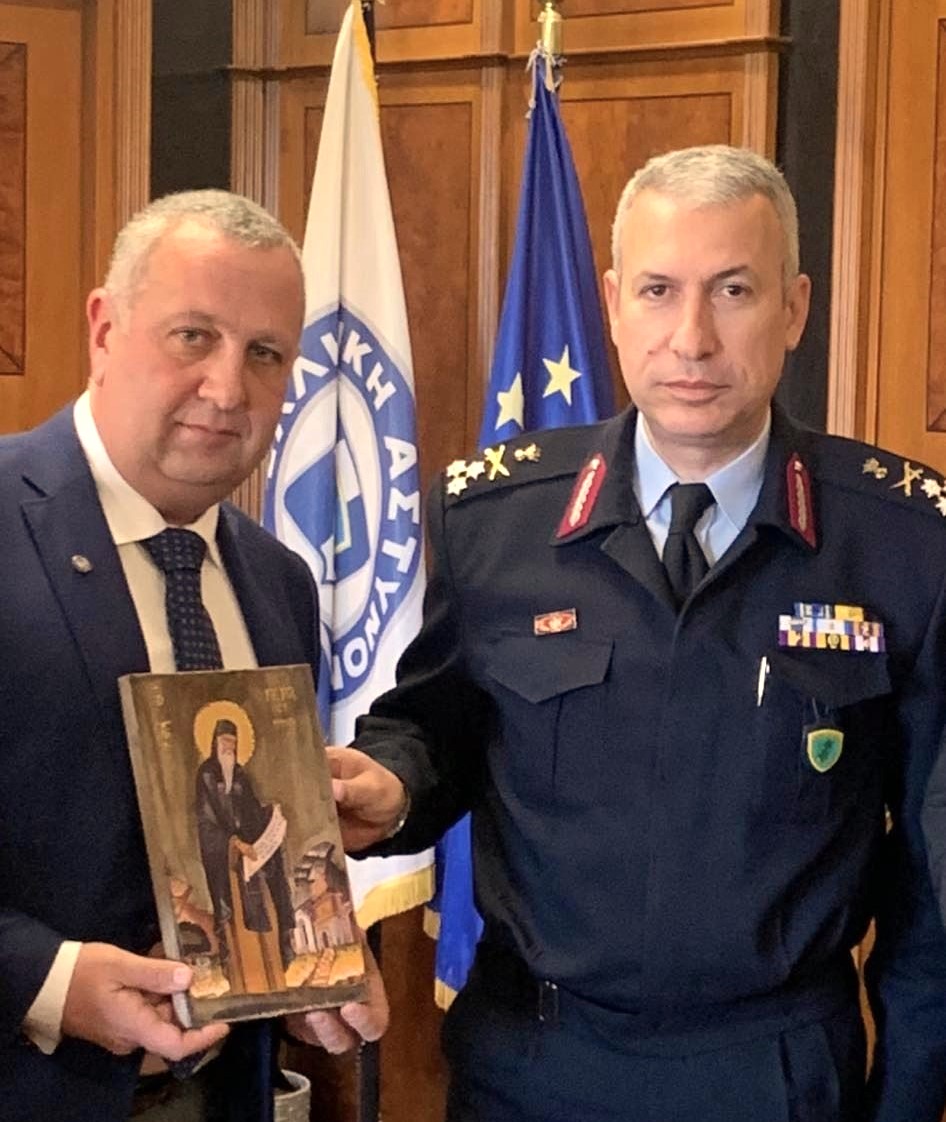 Με τον αρχηγό της Ελληνικής Αστυνομίας Αντιστράτηγο κ. Μάλλιο Δημήτριο συναντήθηκε το ΔΣ της ένωσης μας στην Αθήνα μαζί με τον βουλευτή Κεφαλονιάς & Ιθάκης κ. Παν άγη Καππάτο του οποίου η παρουσία υπήρξε καταλυτική . Από κοινού με τον κ. βουλευτή αναφέρθηκαν εμπεριστατωμένα και με επιχειρήματα τα υπηρεσιακά προβλήματα της Κεφαλονιάς και της Ιθάκης αλλά και προτεινόμενοι επίκαιροι τρόποι διαχείρισης και επίλυσης τους . Έγιναν επίσης αναφορές σε πιο γενικευμένες μορφές εγκληματικότητας , κοινωνικά προβλήματα αλλά και πάρεργα με τα οποία ασχολείται ο αστυνομικός και πρέπει να απαλλαγεί . Σε κλίμα συναδελφικότητας και ρεαλισμού η συνάντηση έφερε θετικά αποτελέσματα και αποτέλεσε αρχή επικοινωνίας και διαλόγου για τα τοπικά αστυνομικά προβλήματα Στο επιστέγασμα της συνάντησης ο πρόεδρος της Ένωσης μας Γρηγορόπουλος Κωνσταντίνος παρεκκλίνοντας από τα συνήθη αστυνομικά αναμνηστικά παρέδωσε στον κ. Αρχηγό μια εικόνα του Αγίου Γερασίμου ευχόμενος καλή δύναμη στο έργο του .