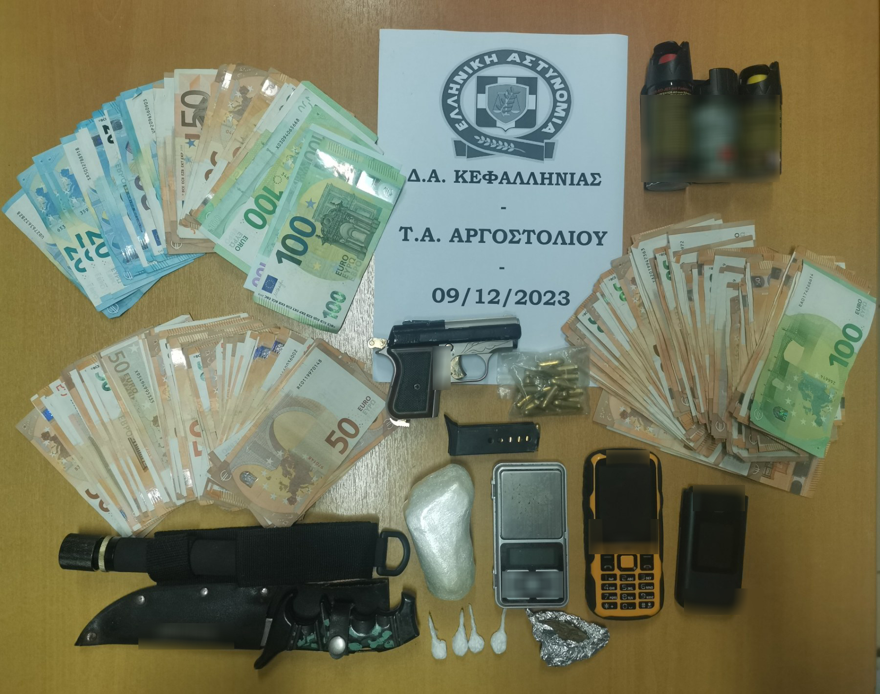 Κατασχέθηκαν μεταξύ άλλων ποσότητα κοκαΐνης, -1- πιστόλι, φυσίγγια διαφόρων διαμετρημάτων, ηλεκτρονική ζυγαριά ακριβείας, το χρηματικό ποσό των -11.745- ευρώ και αυτοκίνητο