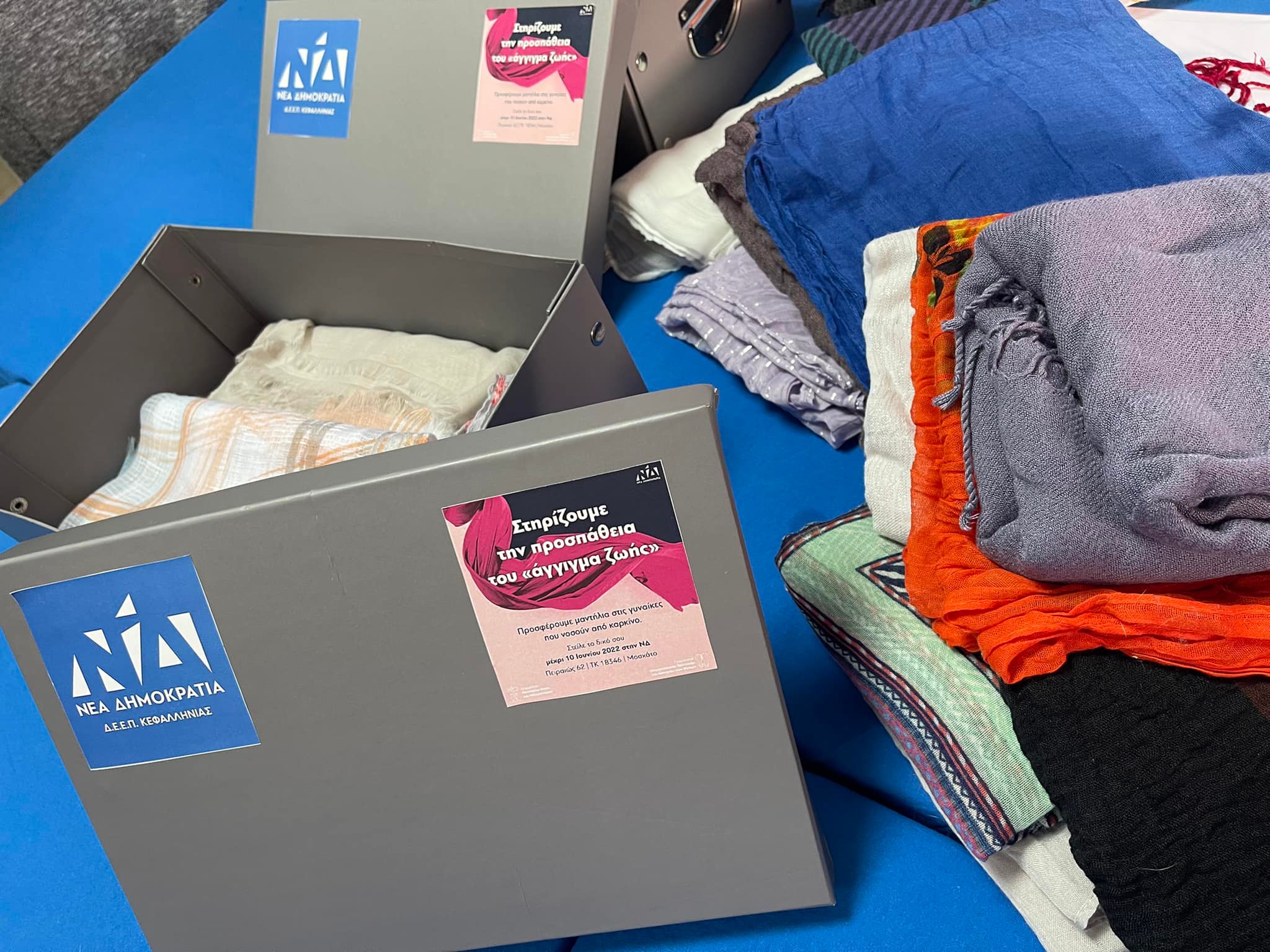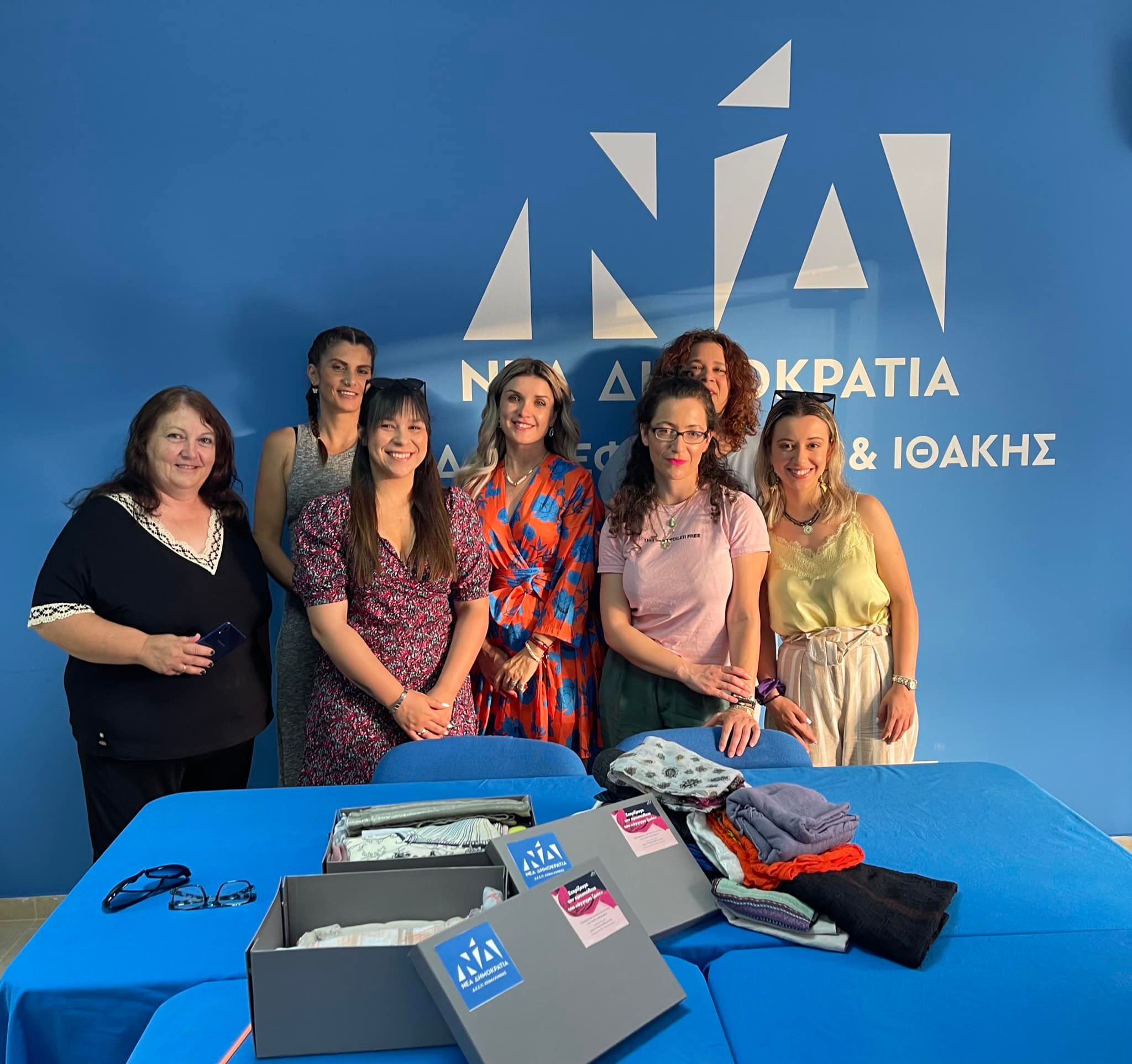 Η Γραμματέας παρέλαβε από μέλη της ΔΕΕΠ και της ΟΝΝΕΔ τα μαντήλια που προσέφεραν στο πλαίσιο της δράσης της Γραμματείας σε συνεργασία με την Γραμματεία Οικογενειακής Πολιτικής & Ισότητας των Φύλων ΝΔ, για τη στήριξη του έργου της οργάνωσης «Άγγιγμα Ζωής» με τη συγκέντρωση μαντηλιών που θα διατεθούν στις γυναίκες που νοσούν από καρκίνο και νοσηλεύονται στο Γενικό Ογκολογικό Νοσοκομείο «Οι Άγιοι Ανάργυροι».