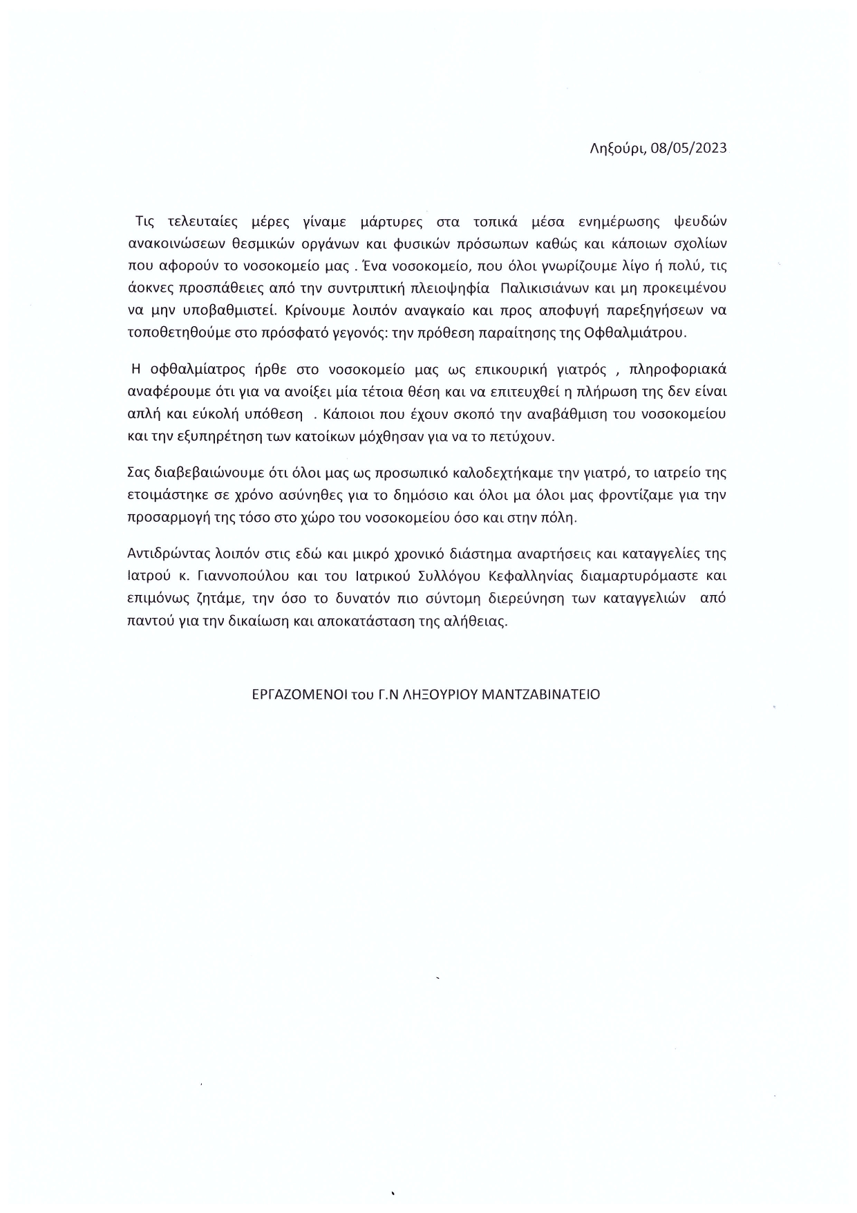 Κίνηση Πολιτών Επαρχίας Σάμης Τάσος Γερασίμου Καβαλλιεράτος Η χτεσινή συγκέντρωση για την υποστελέχωση του Κ. Υ. Σάμης.…