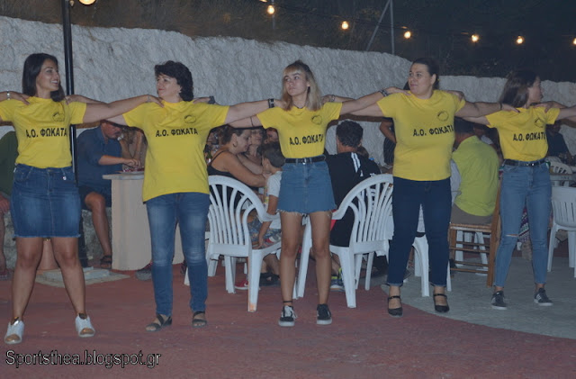 Να αναφέρουμε ότι, τόσο στον Δήμαρχο Αργοστολίου κ. Θ. Μιχαλάτο, όσο και στον κ. Γερ. Δεστούνη, δόθηκε τιμητικά από μια φανέλα της ομάδας, με το Νο 10 και 5 αντίστοιχα. Τέλος, από την λαχειοφόρο αγορά, τυχερή αναδείχθηκε η Αργυρώ Γερουλάνου, μέλος του χορευτικού συγκροτήματος των Φωκάτων, όπου κέρδισε μια τηλεόραση 43″!  Εμείς από την πλευρά μας να συγχαρούμε για ακόμη μια φορά τον δραστήριο και κορυφαίο πρόεδρο του νησιού, Νίκο Φωκά, ο οποίος έχει καταφέρει μέσω του Συλλόγου να προβάλει αθλητισμό και πολιτισμό, με στόχο να μυήσει την νεολαία σε αυτά, σε εποχές μάλιστα δύσκολες. Μαζί βέβαια το Δ.Σ., οι νοικοκυρές οι εθελοντές και οι φίλοι των Φωκάτων. Παρακάτω μεγάλο φωτορεπορτάζ από την γιορτή
