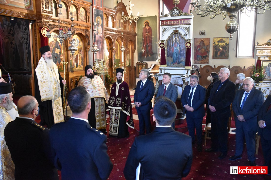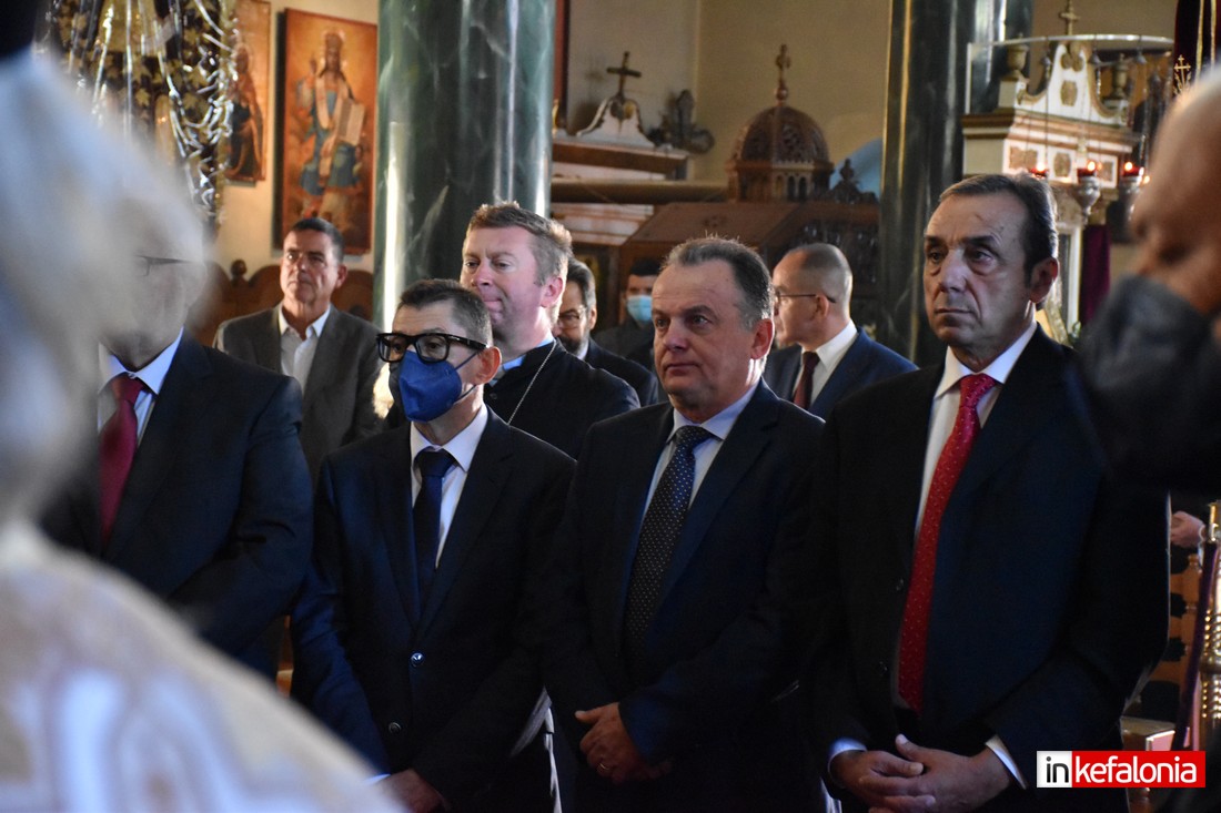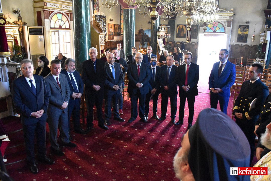 Το παρών έδωσαν, ο Βουλευτής Κεφαλονιάς και Ιθάκης, Παναγής Καππάτος, ο Δήμαρχος Αργοστολίου Θεόφιλος Μιχαλάτος, ο πρόεδρος του Δημοτικού Συμβουλίου Αργοστολίου Νικόλας Βαλλιανάτος, ο αντιδήμαρχος Δήμου Αργοστολίου Σπύρος Σαμούρης, οι αντιδήμαρχοι Δήμου Σάμης Στέλιος και Σπύρος Σπαθής, ο πρόεδρος του ΟΚΑΠ Μιχάλης Μοσχονάς και Σπύρος Σπαθής, ο περιφερειακός σύμβουλος με την ΑΝΑΣΑ Σπύρος Γαλιατσάτος, εκπρόσωποι και των τριών Σωμάτων Ασφαλείας της Κεφαλονιάς, ο Διοικητής του ΓΝ Κεφαλονιάς Δημήτρης Μαρτίνης, ο εκπρόσωπος της Καθολικής εκκλησίας στην Κεφαλονιά Σιμονέλ Μποάνκις και φυσικά ο οικοδεσπότης Αντιπεριφερειάρχης Κεφαλονιάς και Ιθάκης Σταύρος Τραυλός.