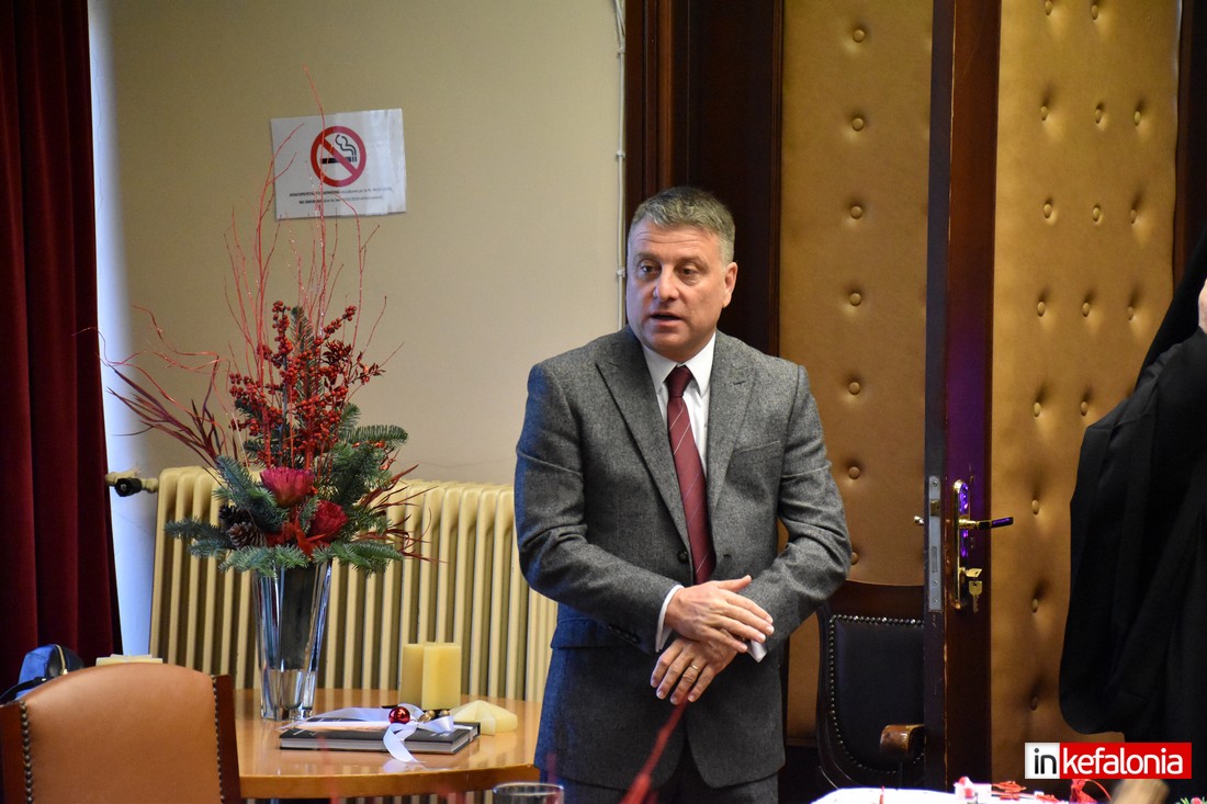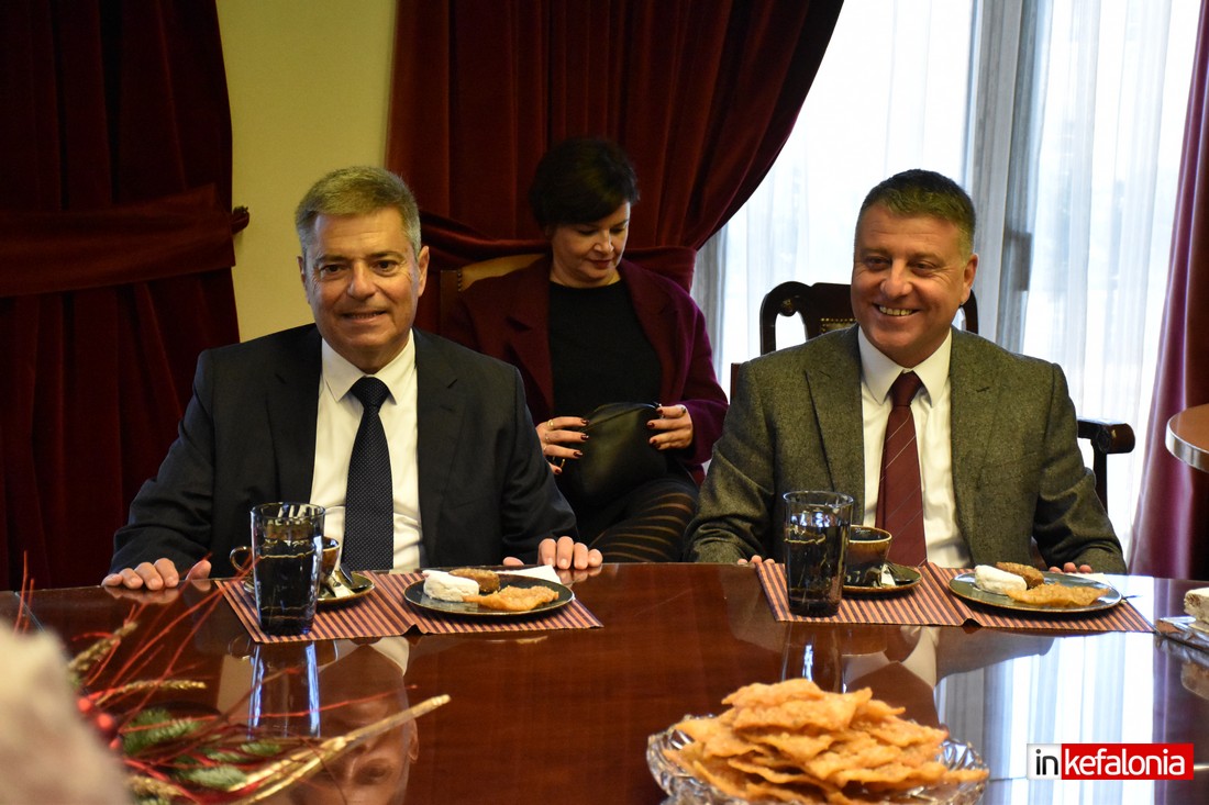 Ακολούθησε, δεξίωση στην Περιφερειακή Ενότητα Κεφαλονιάς και Ιθάκης, όπου παραδοσιακά κόπηκε και η πρωτοχρονιάτικη βασιλόπιτα.