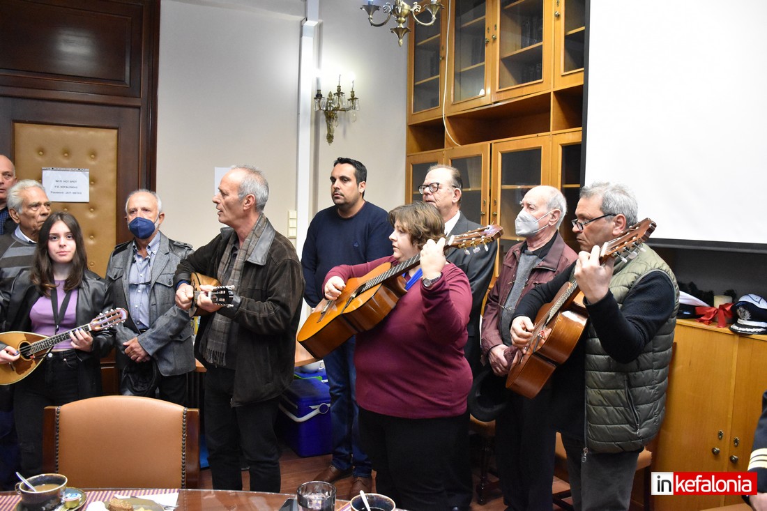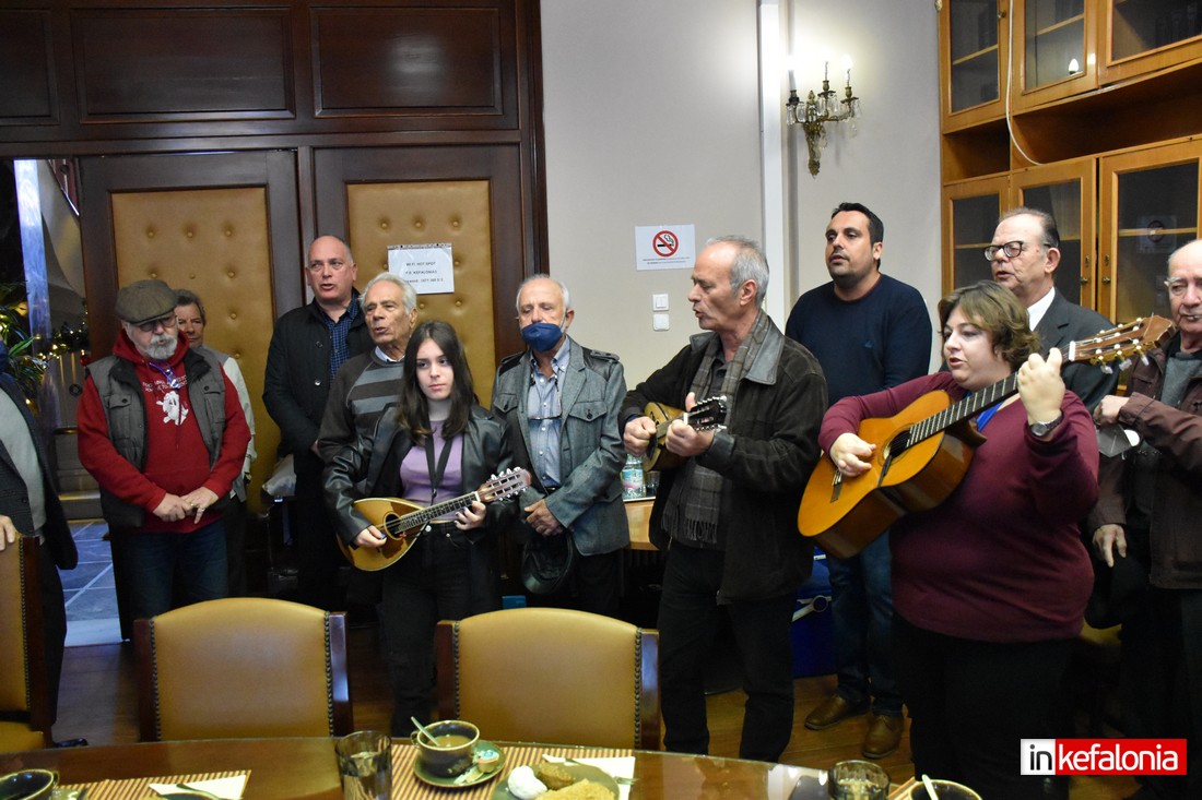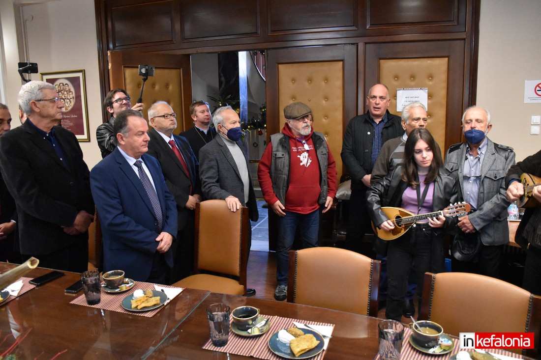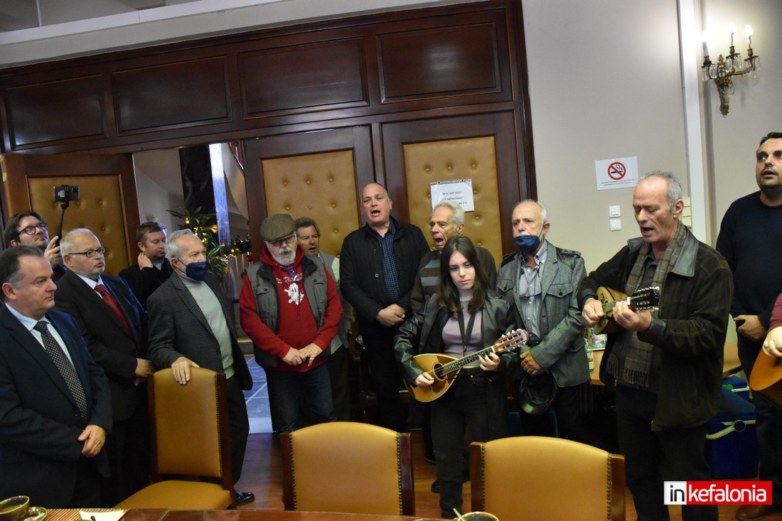 Όμορφη νότα στην σημερινή δεξίωση έδωσαν τα μέλη της Χορωδίας και Μαντολινάτας Αργοστολίου που είπαν τα Κεφαλονίτικα κάλαντα στους παρευρισκόμενους.