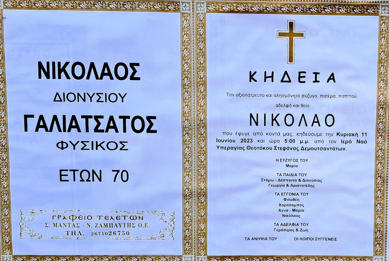 ΣΥΛΛΥΠΗΤΗΡΙΟ ΜΗΝΥΜΑ ΓΙΑ ΤΟΝ ΘΑΝΑΤΟ ΤΟΥ ΝΙΚΟΛΑ ΓΑΛΙΑΤΣΑΤΟΥ
