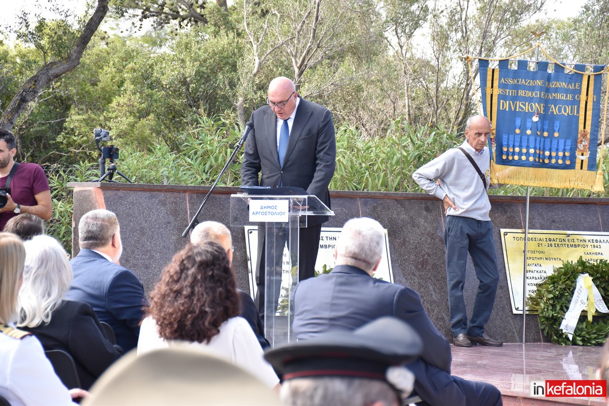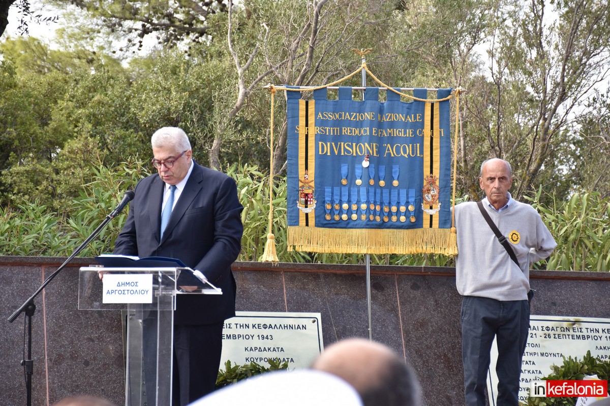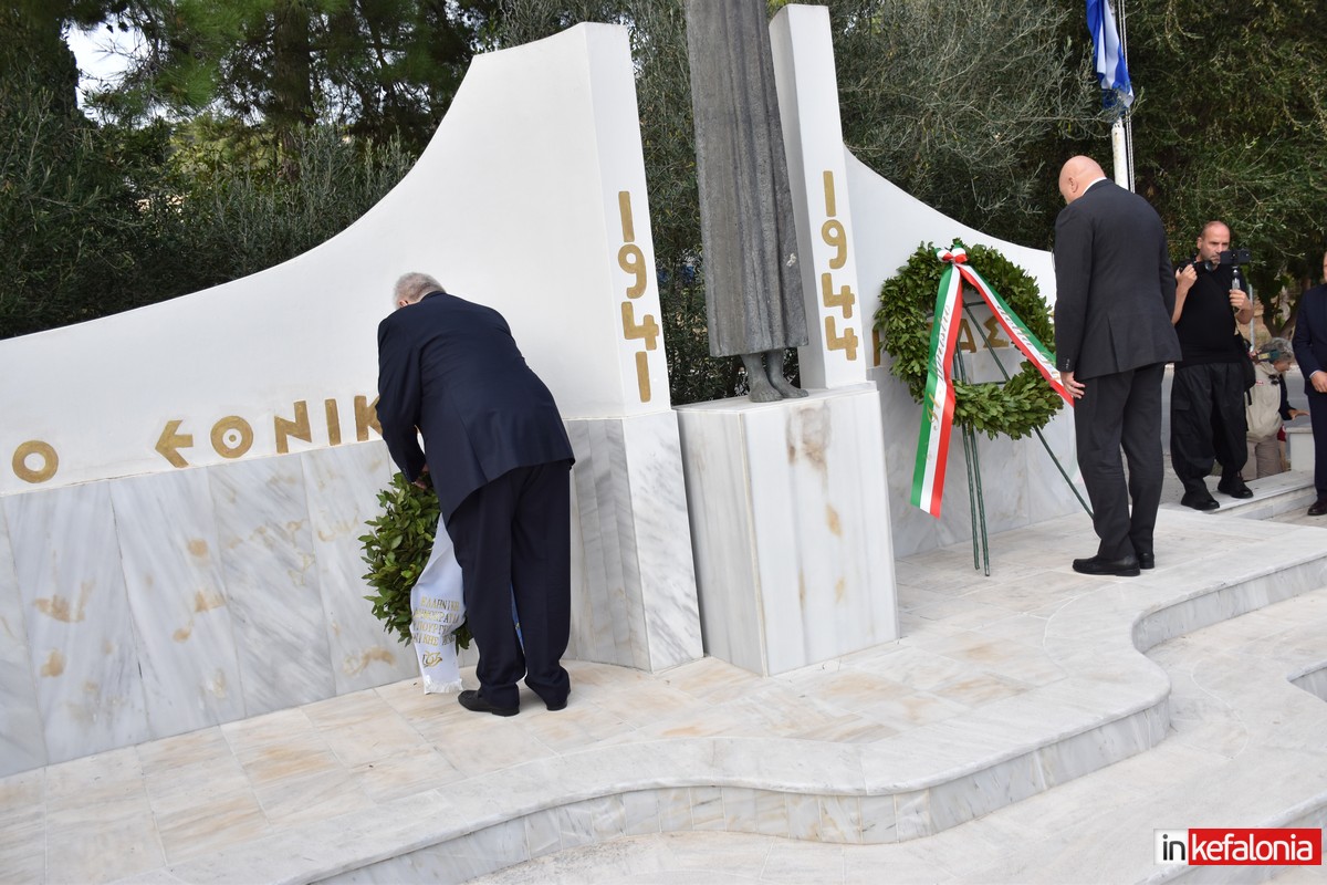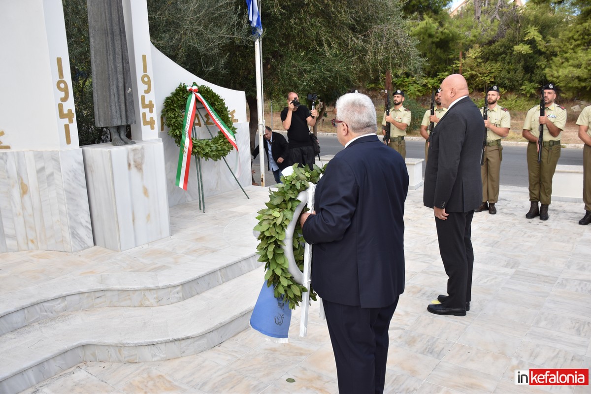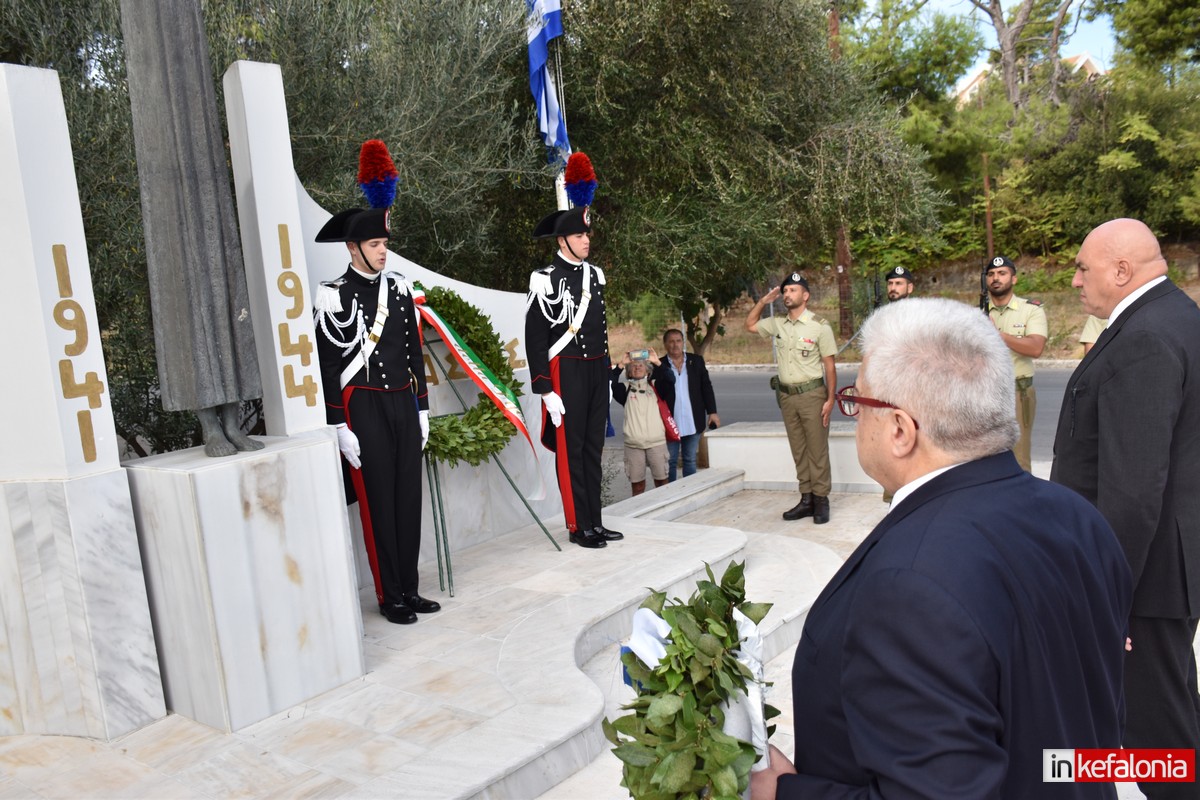 Με πάσα επισημότητα και υψηλές παρουσίες, πραγματοποιήθηκε το πρωί του Σαββάτου 14 Οκτωβρίου στο Αργοστόλι, το ετήσιο μνημόσυνο για τα 80 χρόνια από την σφαγή των Ιταλών αξιωματικών και στρατιωτών της Μεραρχίας Acqui στην Κεφαλονιά.