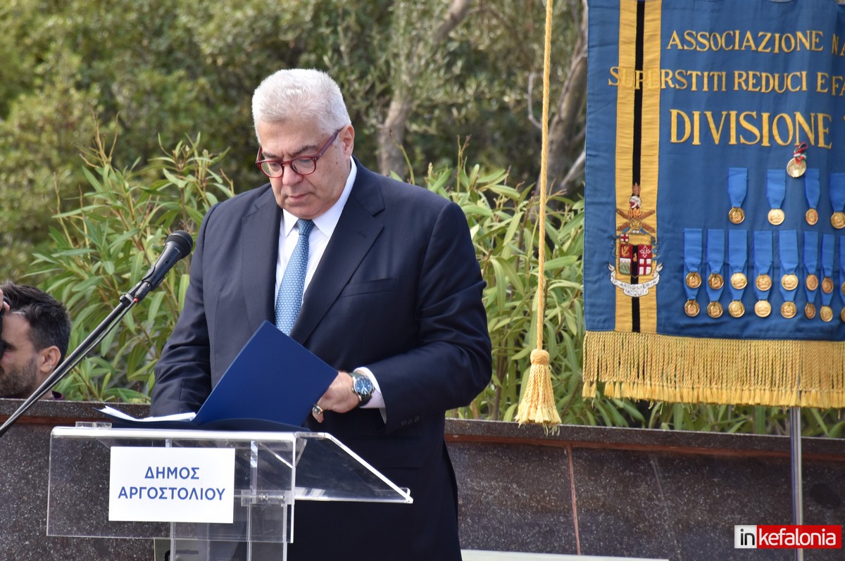 Νωρίτερα, είχε γίνει κατάθεση στεφάνων στο Μνημείο της Ελληνικής Εθνικής Αντίστασης στο Αργοστόλι, αλλά και στο σημείο που δολοφονήθηκαν οι Ιταλοί της Μεραρχίας Ακουι, από τα Γερμανικά στρατεύματα, τον Σεπτέμβριο του 1943.
