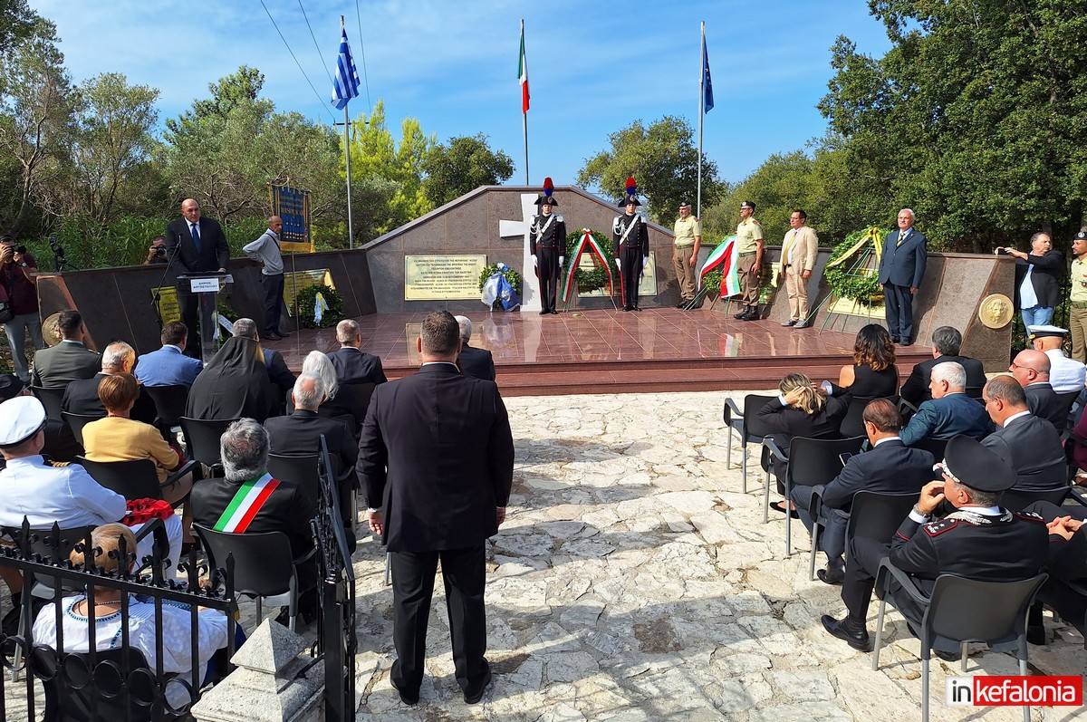 Στο λόφο που βρίσκεται το μνημείο των Ιταλών Πεσόντων στο Αργοστόλι, πραγματοποιήθηκε η εκδήλωση μνήμης και τιμής σε όλους εκείνους τους Ιταλούς στρατιώτες που σφαγιάστηκαν από τους Γερμανούς τον Σεπτέμβριο του 1943 στην Κεφαλονιά.