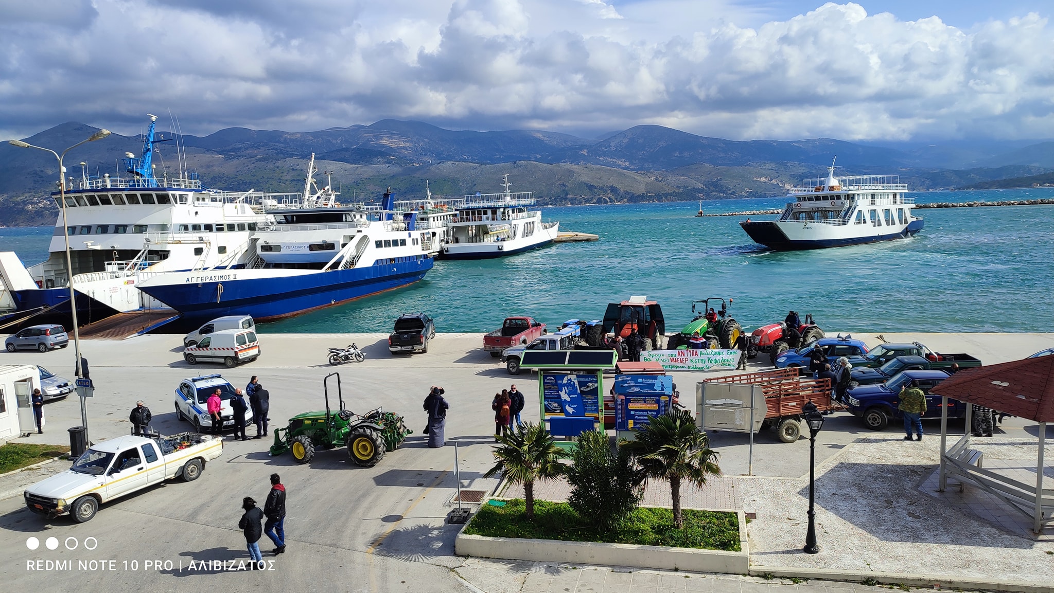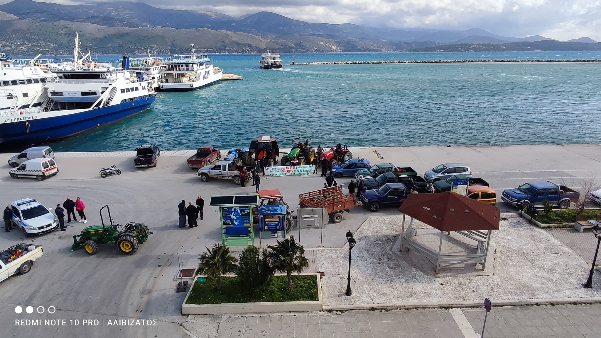 Ληξούρι: Συμβολική κατάληψη του λιμανιού από δεκάδες αγρότες (εικόνες)