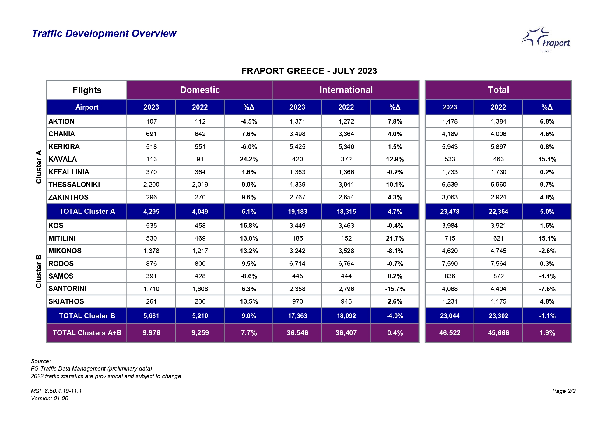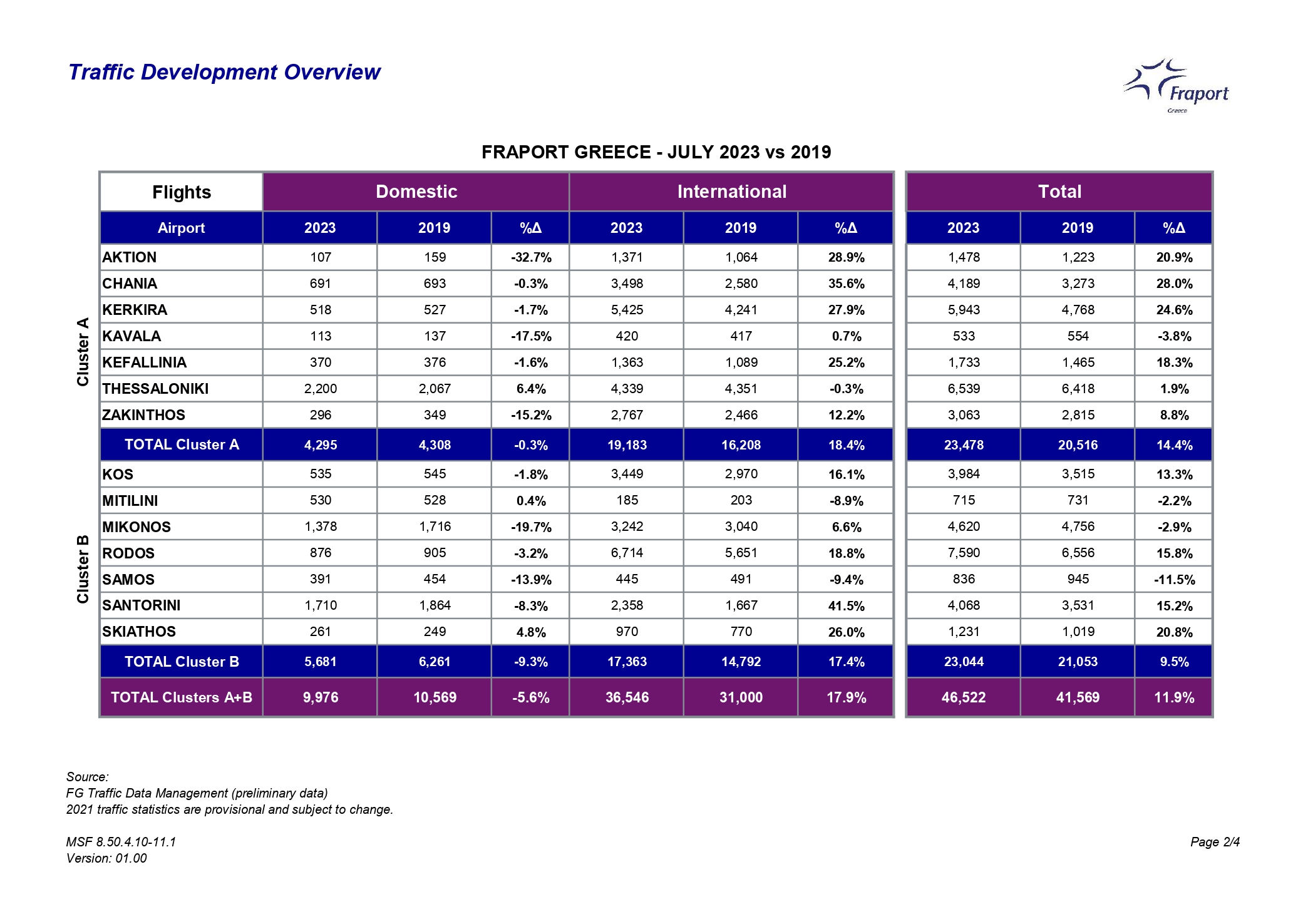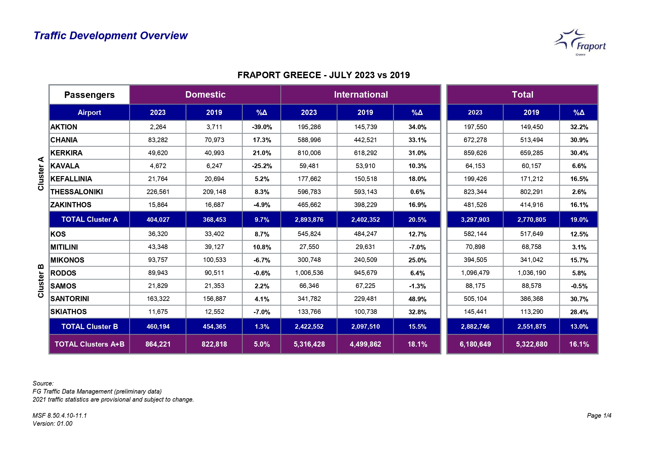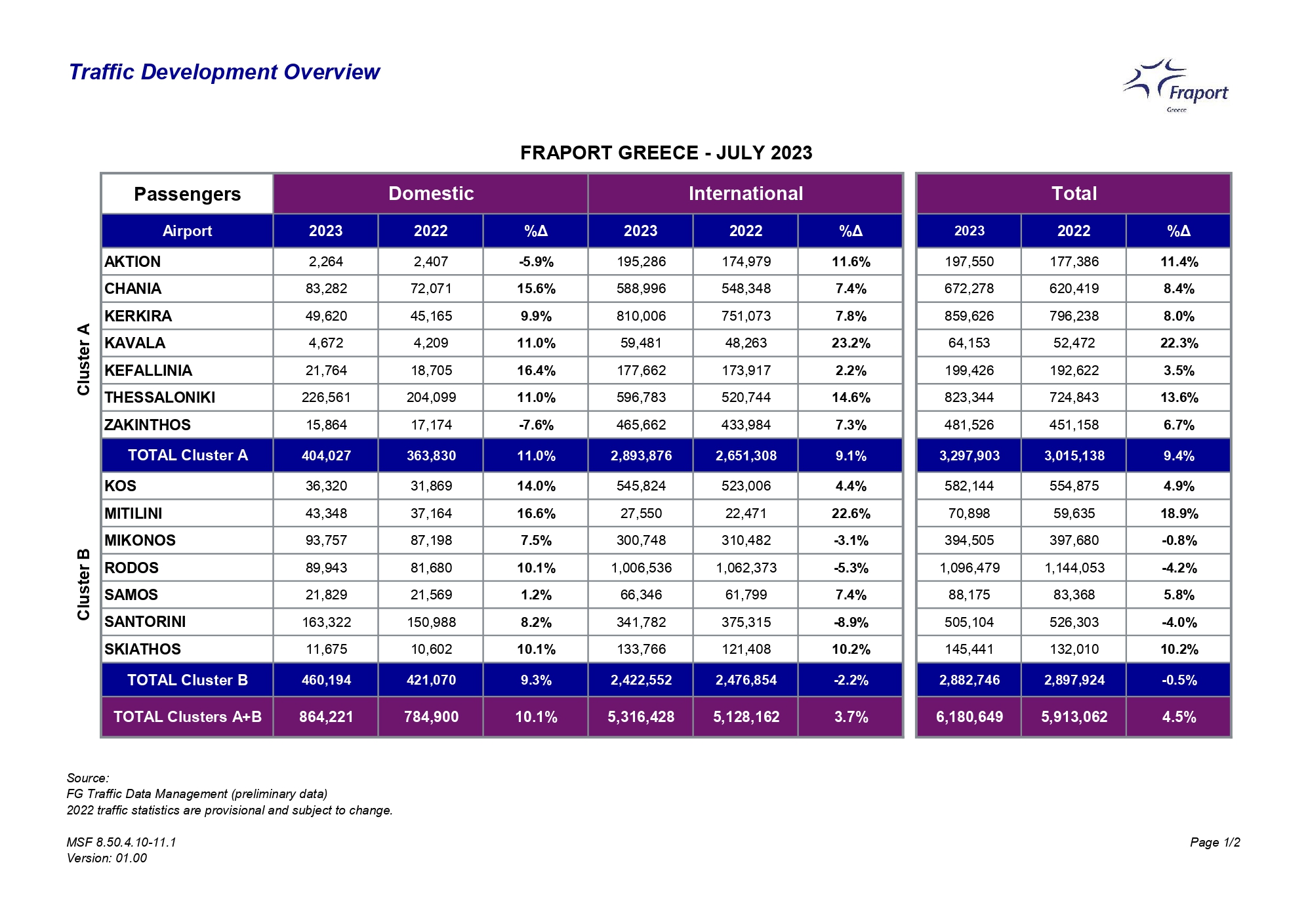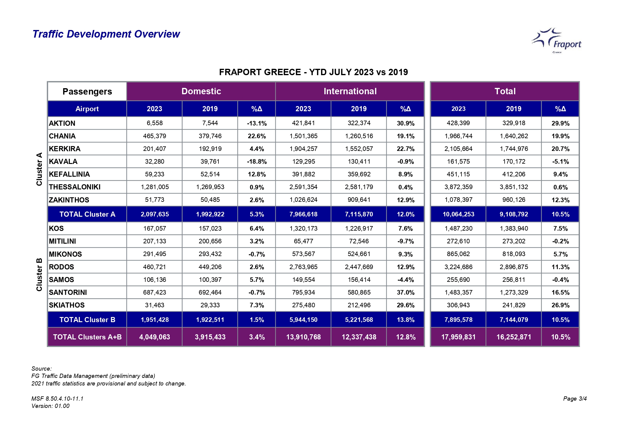 Συνολικά, αν προσθέσουμε και τις αφίξεις από το εσωτερικό της χώρας, οι αφίξεις επιβατών στην Κεφαλονιά έφτασαν συνολικά τις 199.426 επιβάτες τον Ιούλιο του 2023, σε σχέση με 192.622 επιβάτες τον αντίστοιχο μήνα του 2022 (αύξηση 3,5%).