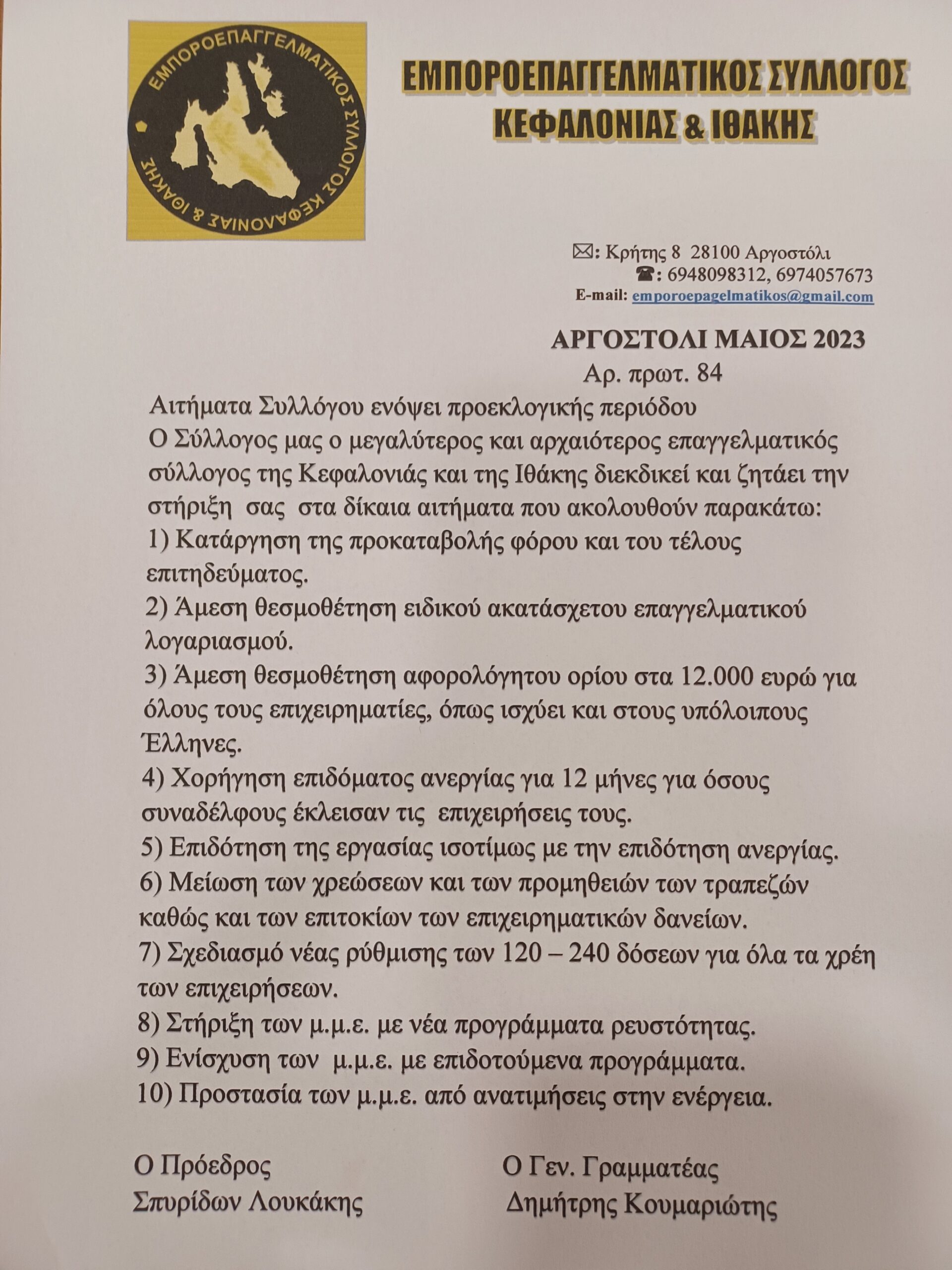 Οι υποψήφιοι βουλευτές του ΣΥΡΙΖΑ για τα αιτήματα των εμποροεπαγγελματιών Κεφαλονιάς & Ιθάκης