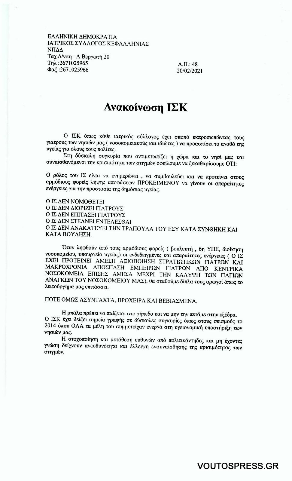 Οργισμένη ανακοίνωση του Ιατρικού Συλλόγου Κεφαλονιάς- 20 Φεβρουαρίου 2021 Τι ξεκαθαρίζει σε σχέση με τον κορωνοιό στο νησί μας Tweet Share Pin It Share Ακολουθήστε το voutospress.gr στο Google News και μάθετε πρώτοι όλες τις ειδήσεις ΤΟ ΒΗΜΑ ΤΗΣ ΠΡΟΕΔΡΟΥ ΤΟΥ ΙΑΤΡΙΚΟΥ ΣΥΛΛΟΓΟΥ ΚΕΦΑΛΛΗΝΙΑΣ ΙΘΑΚΗΣ Διονύσιος Βούτος Δημοσιογράφος 45 χρόνια στην δημοσιογραφία. Δημοσιογράφος ΕΡΤ Σχετικά Άρθρα Τα δικαιώματα των οφειλετών στις εισπρακτικές εταιρείες και τα δικηγορικά γραφεία Τα τελευταία χρόνια και ιδίως την τελευταία πενταετία, το φαινόμενο των λεγόμενων «εισπρακτικών εταιρειών» και… Μόνο ηλεκτρονικά η ανανέωση διπλώματος οδήγησης – Ποια δικαιολογητικά απαιτούνται Μέσω ειδικής εφαρμογής θα είναι δυνατή η ανανέωση της άδειας οδήγησης, οποιασδήποτε κατηγορίας. Αποκλειστικά ηλεκτρονικά, μέσω συγκεκριμένης… ΕΚΠΟΜΠΗ ΤΟ ΒΗΜΑ ΤΟΥ ΠΟΛΙΤΗ 23 ΜΑΡΤΙΟΥ 2016 IONIAN GALAXY ΑΣ ΑΚΟΥΣΟΥΜΕ ΤΙ ΜΟΥ ΕΙΠΕ ΓΙΑ ΟΛΟΥΣ ΚΑΙ ΓΙΑ ΟΛΑ ΤΑ ΑΛΥΤΑ ΠΡΟΒΛΗΜΑΤΑ ΤΟΥ…