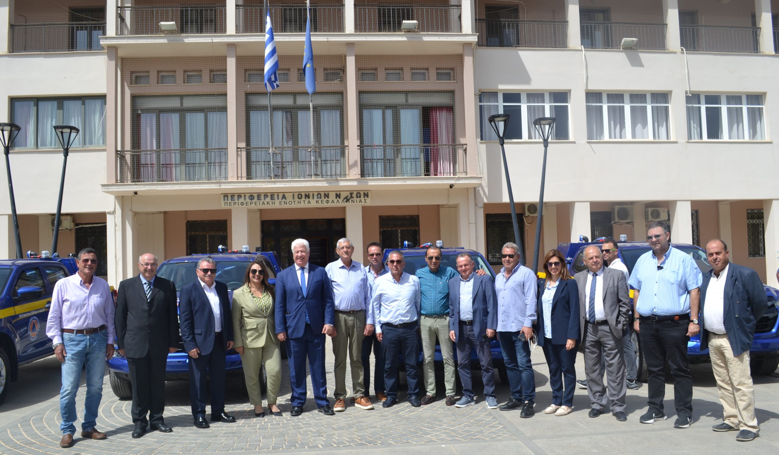 Αμέσως μετά ο Περιφερειάρχης Ιονίων Νήσων κ. Γιάννης Τρεπεκλής παρέδωσε στους 4 Δήμους της Κεφαλονιάς (Αργοστολίου, Ληξουρίου και Σάμης) και της Ιθάκης, 4 Πυροσβεστικά Οχήματα από το Πρόγραμμα «ΛΑΕΡΤΗΣ».