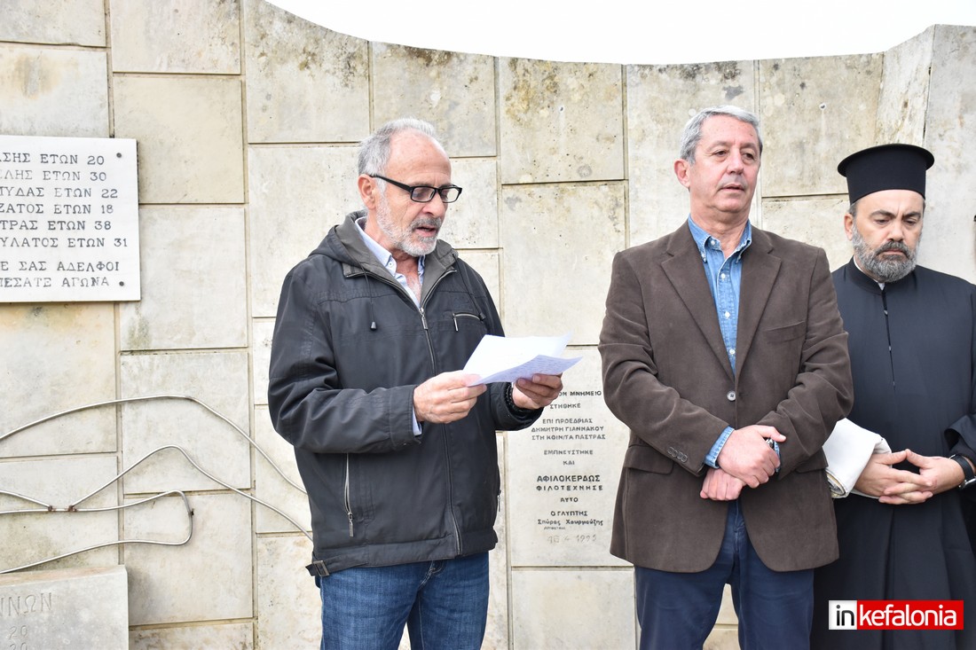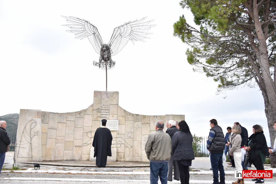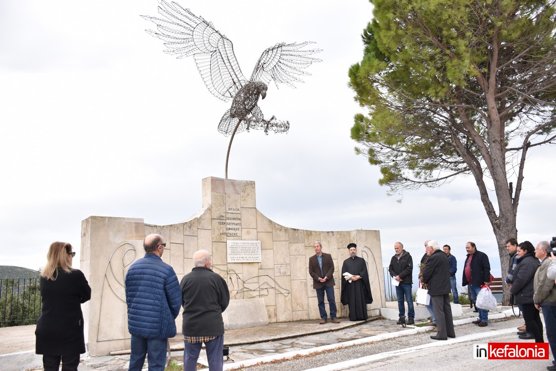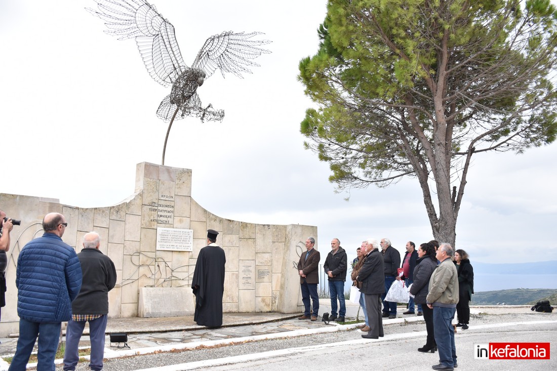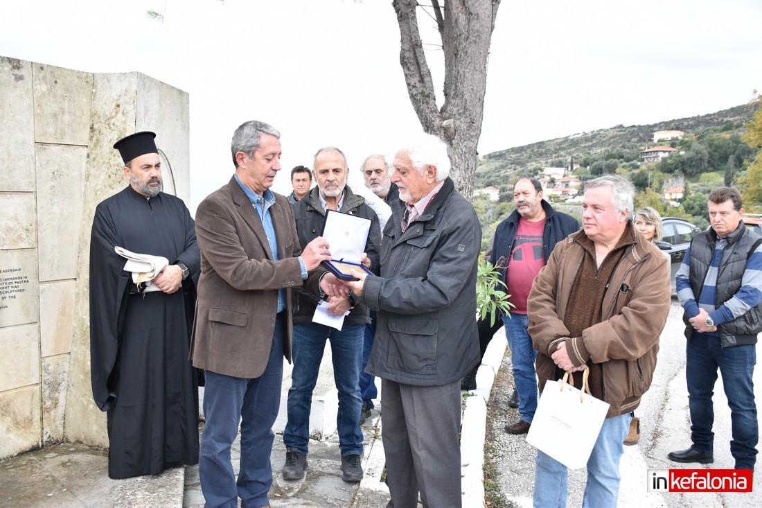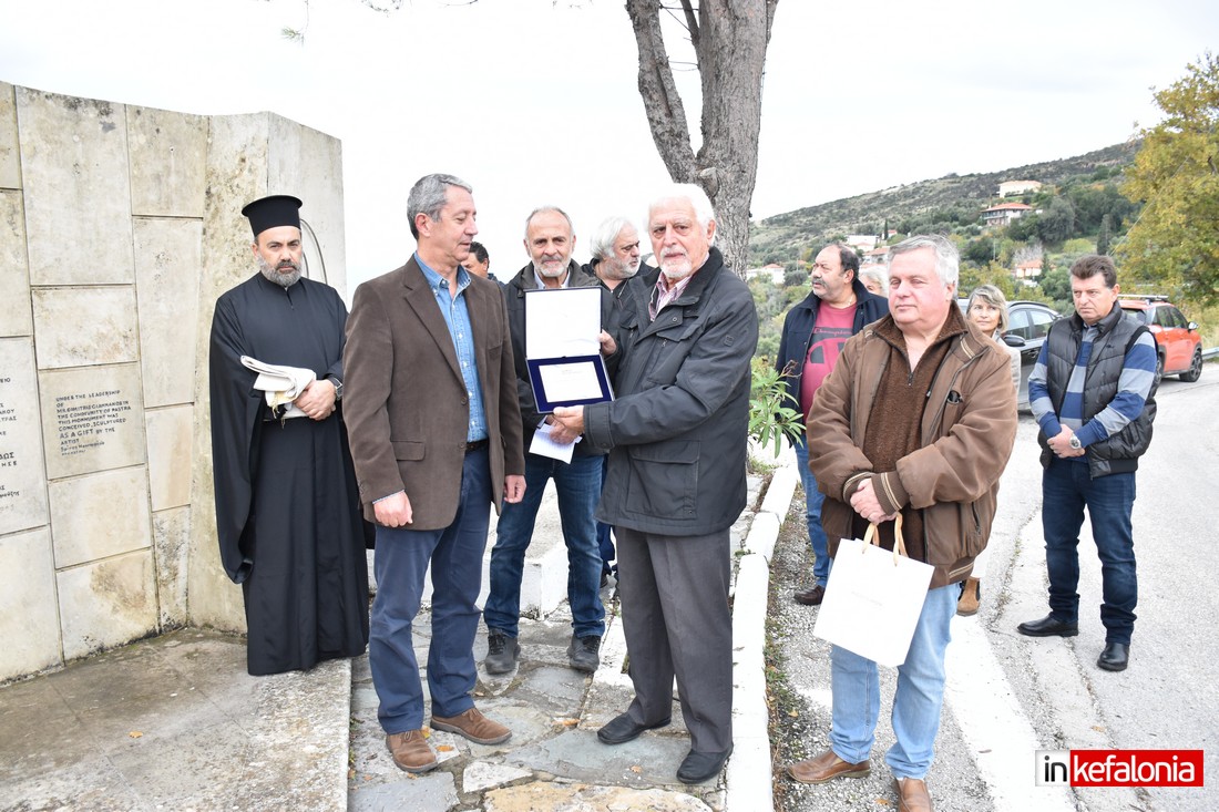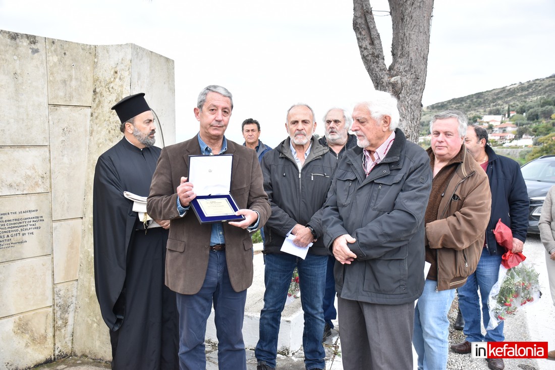 Ο αντιδήμαρχος Δήμου Αργοστολίου Γιώργος Τσιλιμιδός, αφού εξέφρασε τα ειλικρινή συλλυπητήρια του Δήμου Αργοστολίου στις οικογένειες των θυμάτων του τραγικού δυστυχήματος, αναφέρθηκε στους ήρωες Πεσόντες της Εθνικής Αντίστασης και παρέδωσε αναμνηστική πλακέτα στον δημιουργό του μνημείο με τον περίφημο μεταλλικό Αετό Σπύρο Χουρμούζη.