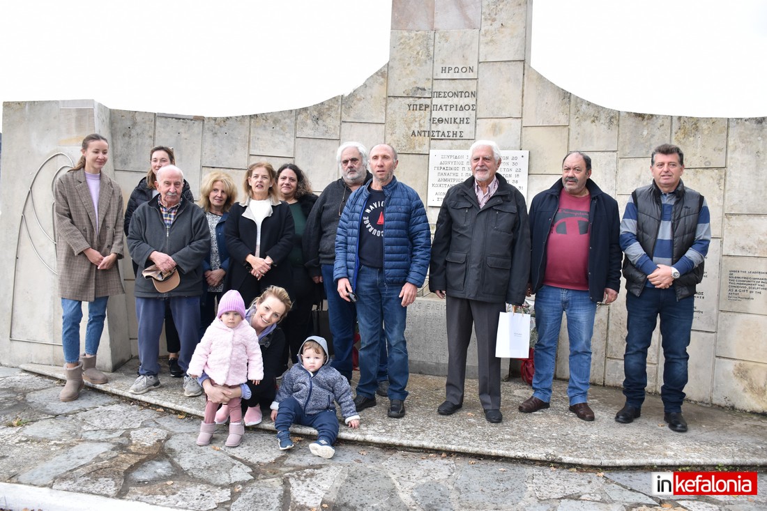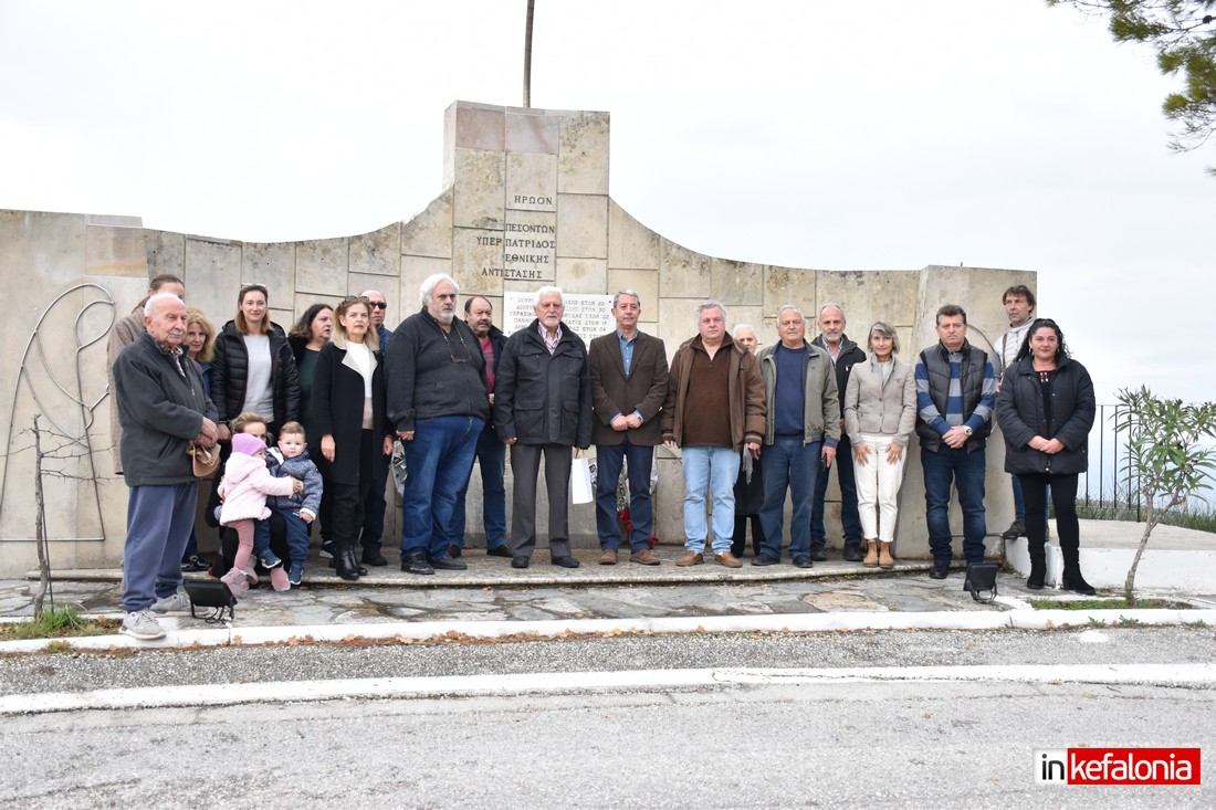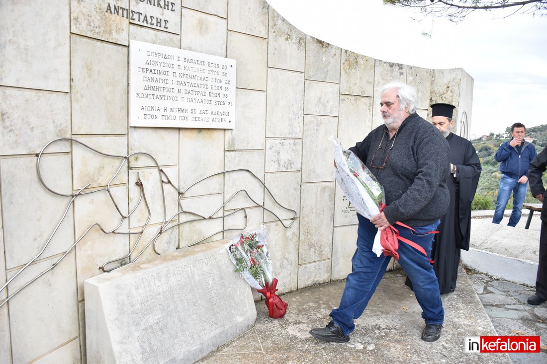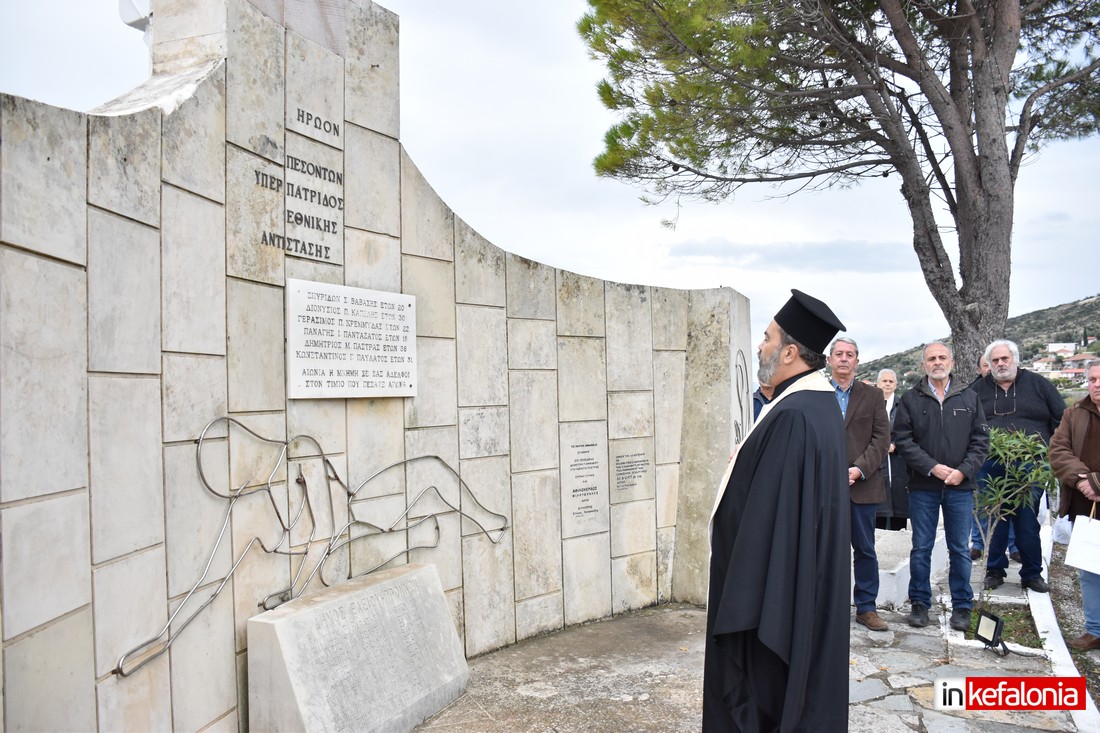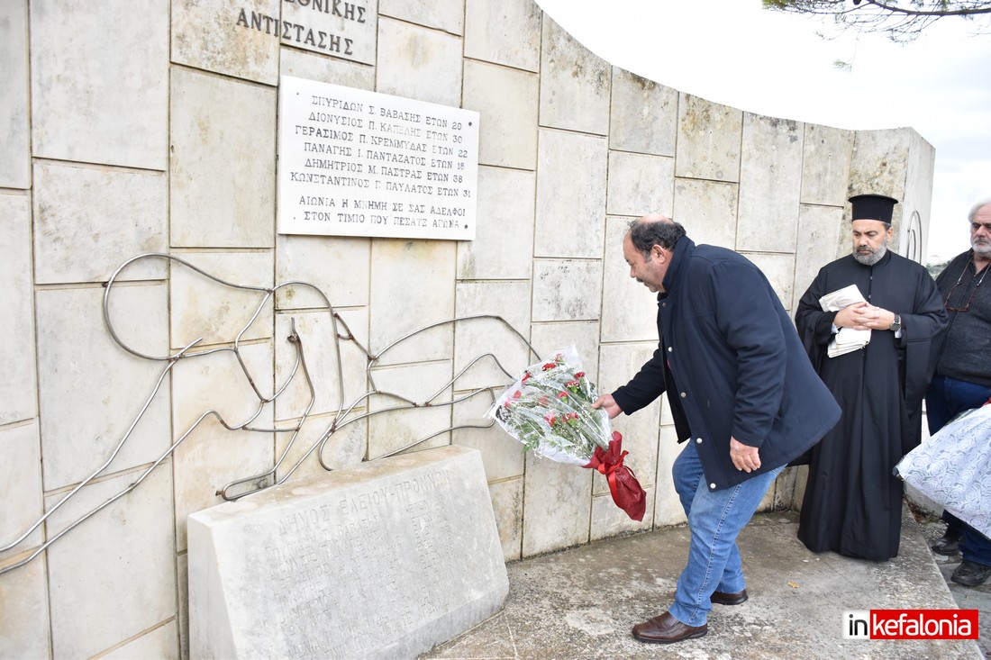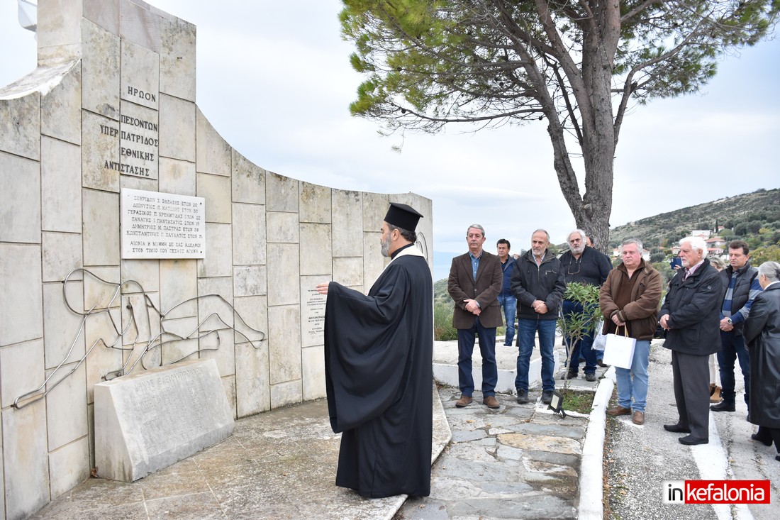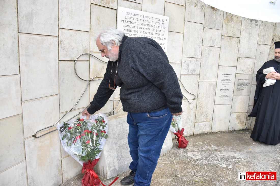 Ο αντιδήμαρχος Δήμου Αργοστολίου Γιώργος Τσιλιμιδός, αφού εξέφρασε τα ειλικρινή συλλυπητήρια του Δήμου Αργοστολίου στις οικογένειες των θυμάτων του τραγικού δυστυχήματος, αναφέρθηκε στους ήρωες Πεσόντες της Εθνικής Αντίστασης και παρέδωσε αναμνηστική πλακέτα στον δημιουργό του μνημείο με τον περίφημο μεταλλικό Αετό Σπύρο Χουρμούζη.