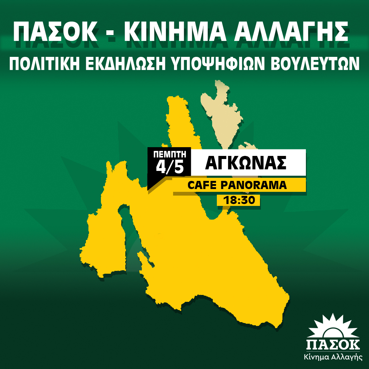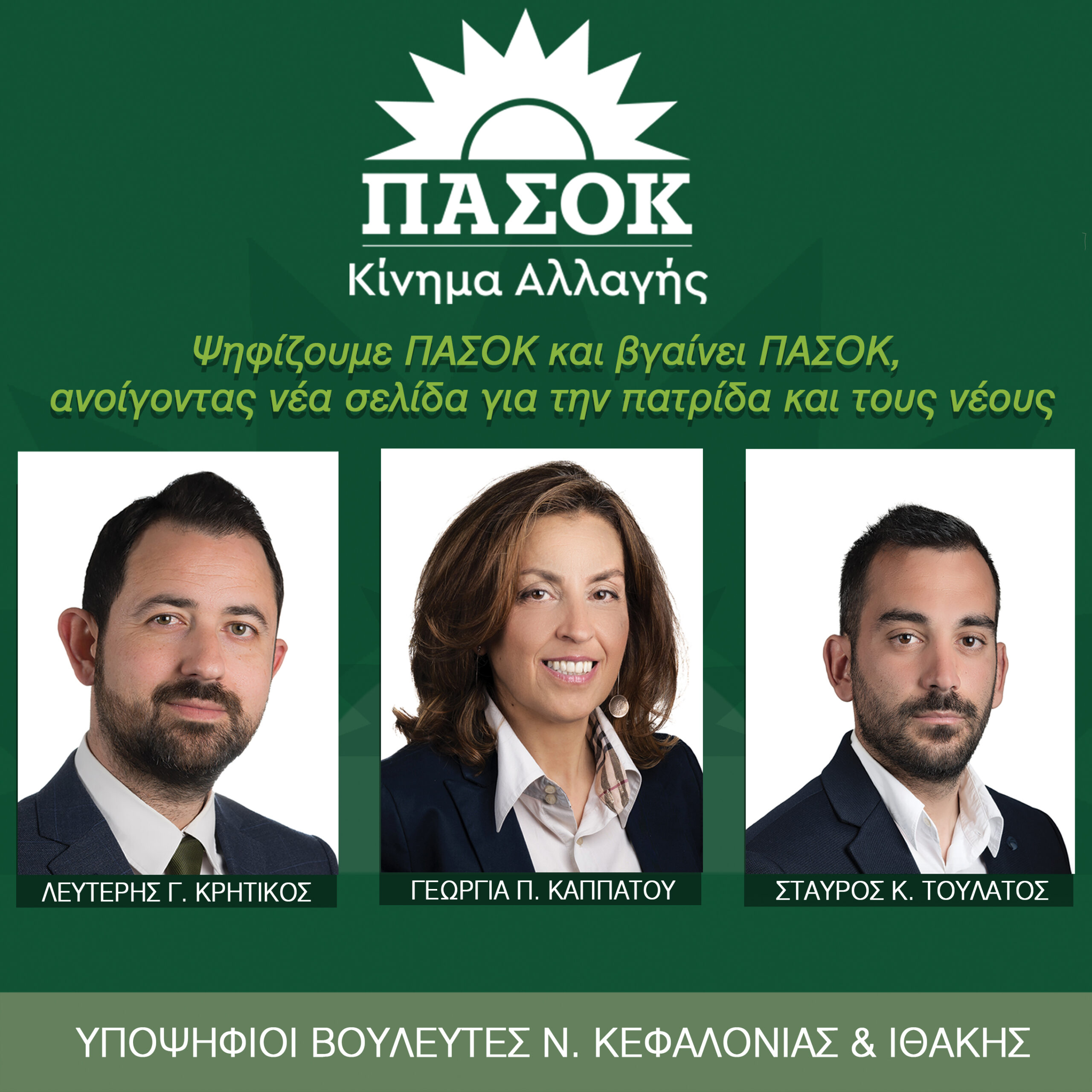 Οι Υποψήφιοι Βουλευτές του ΠΑ.ΣΟ.Κ. στην Κεφαλονιά & την Ιθάκη, Γεωργία Καππάτου, Λευτέρης Κρητικός και Σταύρος Τουλάτος, θα πραγματοποιήσουν πολιτική ομιλία στον Αγκώνα, αύριο, Πέμπτη 4 Μαΐου 2023 και ώρα 18:30 μ.μ. στο CAFE PANORAMA.