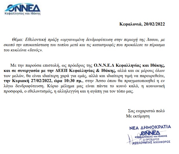 Πρόσκληση στην Δενδροφύτευση της Άσσου 21 Φεβρουαρίου 2022 Tweet Share Pin It Share Ακολουθήστε το voutospress.gr στο Google News και μάθετε πρώτοι όλες τις ειδήσεις ΤΟ ΒΗΜΑ ΤΗΣ ΟΝΝΕΔ ΚΕΦΑΛΛΗΝΙΑΣ ΙΘΑΚΗΣ Διονύσιος Βούτος Δημοσιογράφος 45 χρόνια στην δημοσιογραφία. Δημοσιογράφος ΕΡΤ Σχετικά Άρθρα ΑΝΑΚΟΙΝΩΣΗ ΄΄ΑΝΟΙΧΤΩΝ ΟΡΙΖΟΝΤΩΝ΄΄ Καταθέσαμε σήμερα Τρίτη 5-8-2025 στο προεδρείο του Δημοτικού συμβουλίου την παρακάτω επιστολή. ΠΡΟΣ: Πρόεδρο Δημοτικού… Εκπομπή το Βήμα του Πολίτη στο studio 2 του ionian galaxy 90,8 και το voutospress.gr Ας ακούσουμε τί μού είπε στην εκπομπή μου στο Βήμα του Πολίτη στο studio 2… ΕΥΧΑΡΙΣΤΗΡΙΟ ΕΝ.Ε.Ε.ΓΥ-Λ ΚΕΦΑΛΟΝΙΑΣ ΕΥΧΑΡΙΣΤΗΡΙΟ Η εκπαιδευτική κοινότητα του ΕΝ.Ε.Ε.Ε.Γ-Λ Κεφαλονιάς και ιδιαίτερα ο Σύλλογος Διδασκόντων και ο Διευθυντής…
