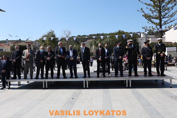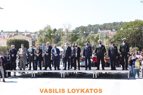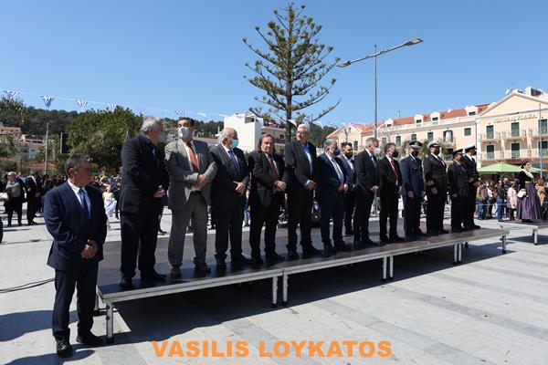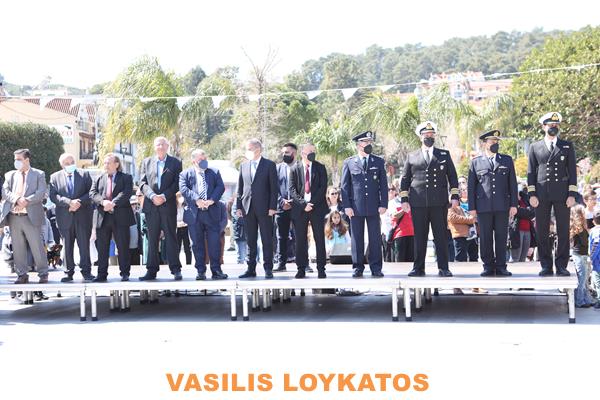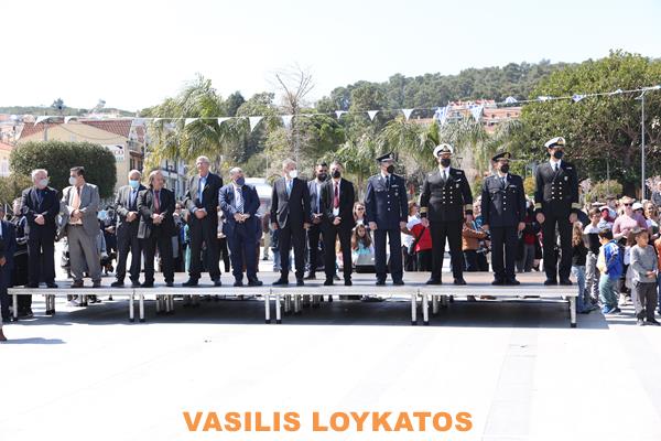 Στην εξέδρα των επισήμων βρέθηκαν μεταξύ άλλων ο Βουλευτής Κεφαλονιάς και Ιθάκης Παναγής Καππάτος, ο Αντιπεριφερειάρχης Κεφαλονιάς και Ιθάκης Σταύρος Τραυλός, ο Δήμαρχος Αργοστολίου Θεόφιλος Μιχαλάτος, ο πρόεδρος του Δημοτικού Συμβουλίου Αργοστολίου Νικόλας Βαλλιανάτος, εκπρόσωποι των σωμάτων ασφαλείας της Κεφαλονιάς, ο περιφερειακός Σύμβουλος Σπύρος Γαλιατσάτος, ο Διευθυντής Δευτεροβάθμιας Εκπαίδευσης Δημήτρης Μαρκάτος, καθώς και ο συντονιστής Εκπαιδευτικού Έργου Δασκάλων Κεφαλληνίας και Ιθάκης κ. Γιώργος Αλεξανδράτος.