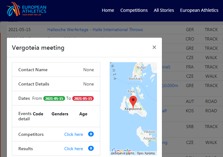 Μια σημαντική διάκριση για τον στίβο της Κεφαλονιάς αποτελεί η απόφαση της Ευρωπαϊκής Ομοσπονδίας να συμπεριλάβει τα ΒΕΡΓΩΤΕΙΑ στο επίσημο αγωνιστικό της πρόγραμμα ( https://european-athletics.com/calendar )