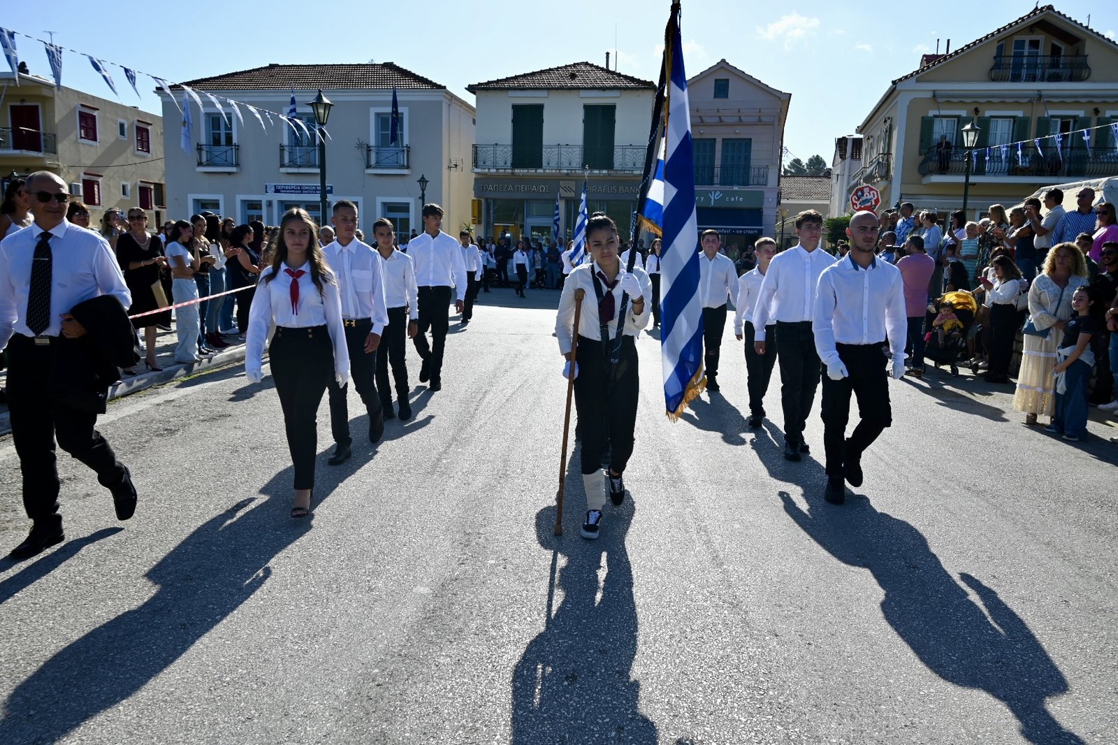 Στη συνέχεια, παρακολούθησε την μαθητική παρέλαση σχολικών μονάδων του νησιού, η οποία πραγματοποιήθηκε με την συμμετοχή της Φιλαρμονικής του Κοινωφελούς Ομίλου Ιθάκης.
