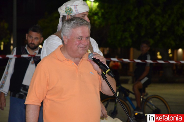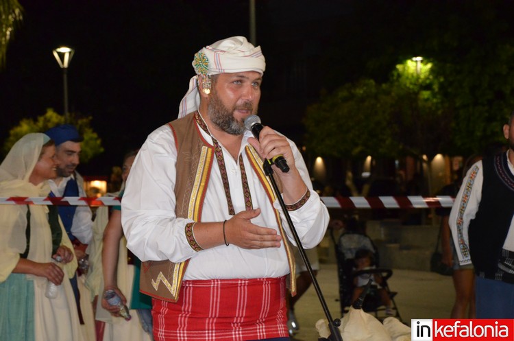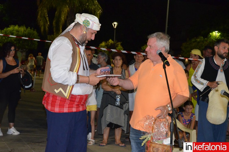 Ο σύμβουλος πολιτισμού Δημάρχου Αργοστολίου, Βίκτωρας Ρουχωτάς χαιρέτησε την εκδήλωση και παρέδωσε αναμνηστικά από τον Δήμο Αργοστολίου στον Χορευτικό Όμιλο Ξάνθης.