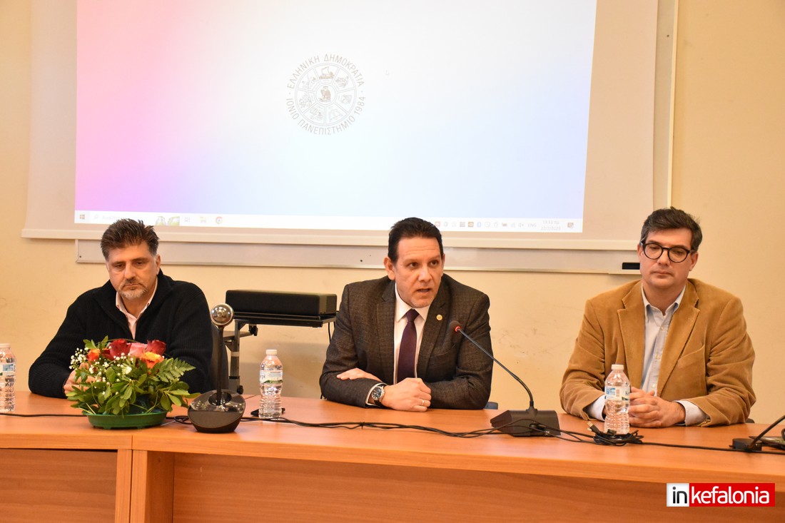 Από την πλευρά του, ο Διευθυντής του Κέντρου Έρευνας και Καινοτομίας του Ιονίου Πανεπιστημίου κ. Παναγιώτης Βλάμος τόνισε: «Διαθεματικότητα, βιωσιμότητα και εξωστρέφεια, υποστήριξη νέων ερευνητών, είναι σημεία που το Ιόνιο Πανεπιστήμιο στοχεύει. Το συγκεκριμένο Ινστιτούτο έχει δουλευτεί ως ιδέα, πάνω από μια δεκαετία και τα «προϊόντα» του μπορούν να βγουν σε εθνικό και τοπικό επίπεδο. Υπάρχουν ιδανικές προϋποθέσεις για να πάει καλά το Ινστιτούτο, με συνέδρια και Ημερίδες. Σε μια εποχή συρρίκνωσης και εσωστρέφειας των Ελληνικών Πανεπιστημίων, το Ιόνιο Πανεπιστήμιο είναι απίστευτα εξωστρεφές. Η διαθεματική έρευνα άλλωστε είναι η πρώτη μας προτεραιότητα».