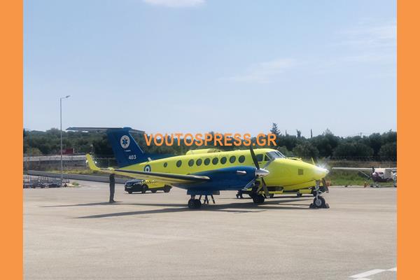 Τώρα ήλθε το ειδικο Αεροπλάνο του ΕΚΑΒ για να τον Μεταφέρει σε Ειδικο Νοσοκομείο Αποκατάστασης των Τραυμάτων