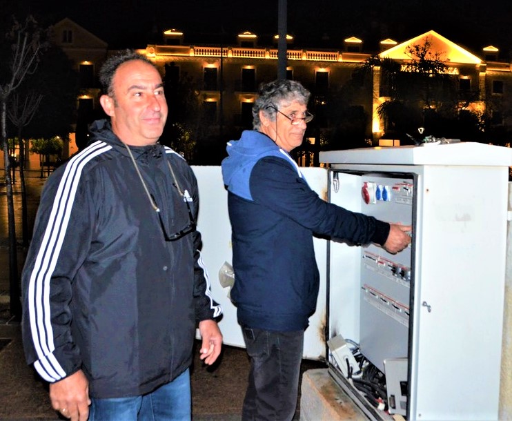 Ο Δήμαρχος Αργοστολίου Θεόφιλος Μιχαλάτος, μαζί με τον Αντιδήμαρχο Σπύρο Σαμούρη και τον Σύμβουλο Δημάρχου σε θέματα Πολιτισμού Βίκτωρα Ρουχωτά, συγκεντρώθηκαν παρέα με τους ηλεκτρολόγους του Δήμου Αργοστολίου Δημήτρη Μακρίδη, Σπύρο Κακούρη και Βαγγέλη Παναγιωτάτο έφεραν το γιορτινό φως και αυτή τη χρονιά.