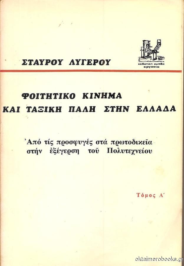 ● Σταύρος Λυγερός, Φοιτητικό κίνημα και ταξική πάλη στην Ελλάδα. Από τις προσφυγές στα Πρωτοδικεία στην Εξέγερση του Πολυτεχνείου, τόμος 1, εκδόσεις Εκδοτική Ομάδα «Εργασία», Αθήνα 1977. [Υπάρχει και 2ος τόμος, τον οποίο δεν έχουμε στη Βιβλιοθήκη. – Φέτος, 2023, ο Στ. Λυγερός κυκλοφόρησε νεότερο βιβλίο του με τίτλο Η εξέγερση του Πολυτεχνείου. Μια ξεχασμένη κατάθεση]. Με βαθιά ανάλυση της τότε πολιτικοκοινωνικής κατάστασης ο συγγραφέας-δράστης εκείνων των γεγονότων παρουσιάζει και κριτικάρει τις «γραμμές» του φοιτητικού κινήματος, καταγράφοντας τα θετικά και αρνητικά, κατά τη γνώμη του, στοιχεία τους, ενώ καταλήγει στη θετική αποτίμηση της νοεμβριανής εξέγερσης για τις μετέπειτα εξελίξεις.