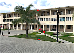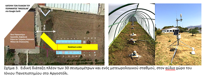 Σχήμα 3. Ειδική διάταξη πλέον των 30 σεισμομέτρων και ενός μετεωρολογικού σταθμού, στον αύλιο χώρο του Ιόνιου Πανεπιστημίου στο Αργοστόλι.
