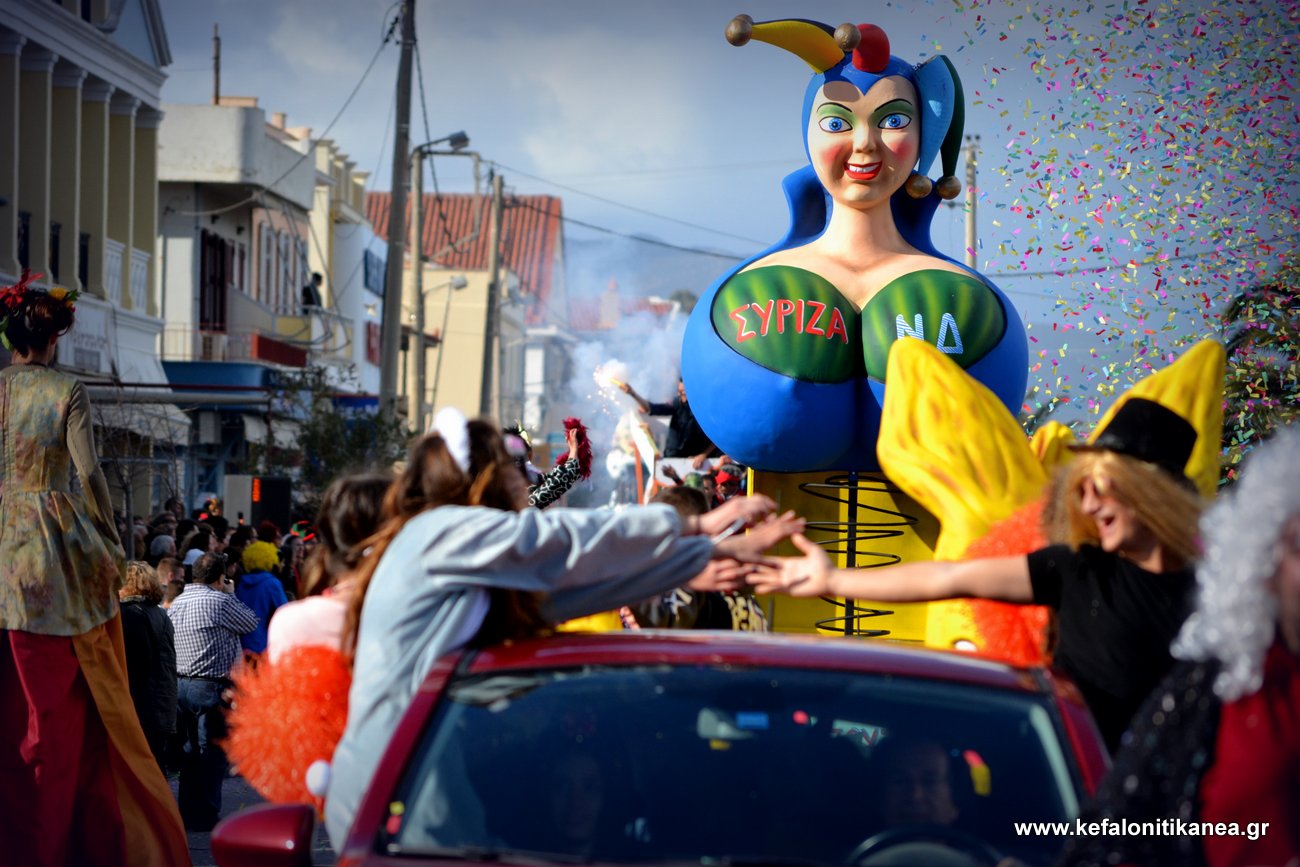 Η σάτιρα ήταν φυσικά παρούσα, τόσο στα άρματα, που πολλά καυτηρίαζαν την σημερινή, πολιτική κυρίως, επικαιρότητα, πολλά σκετς είχαν σαν θέμα το σύμφωνο συμβίωσης ενώ δεν έλειψαν τα πειράγματα και στον δήμαρχο Κεφαλονιάς, ο οποίος και αρνί πήρε (ζωντανό αρνί παρακαλώ) και… βραβείο (ο Θεός να το κάνει) και στον αυτοκράτορα αναγκάστηκε να υποκλιθεί, ενώ δεν έλειψαν και οι προτάσεις για… σύμφωνο συμβίωσης.