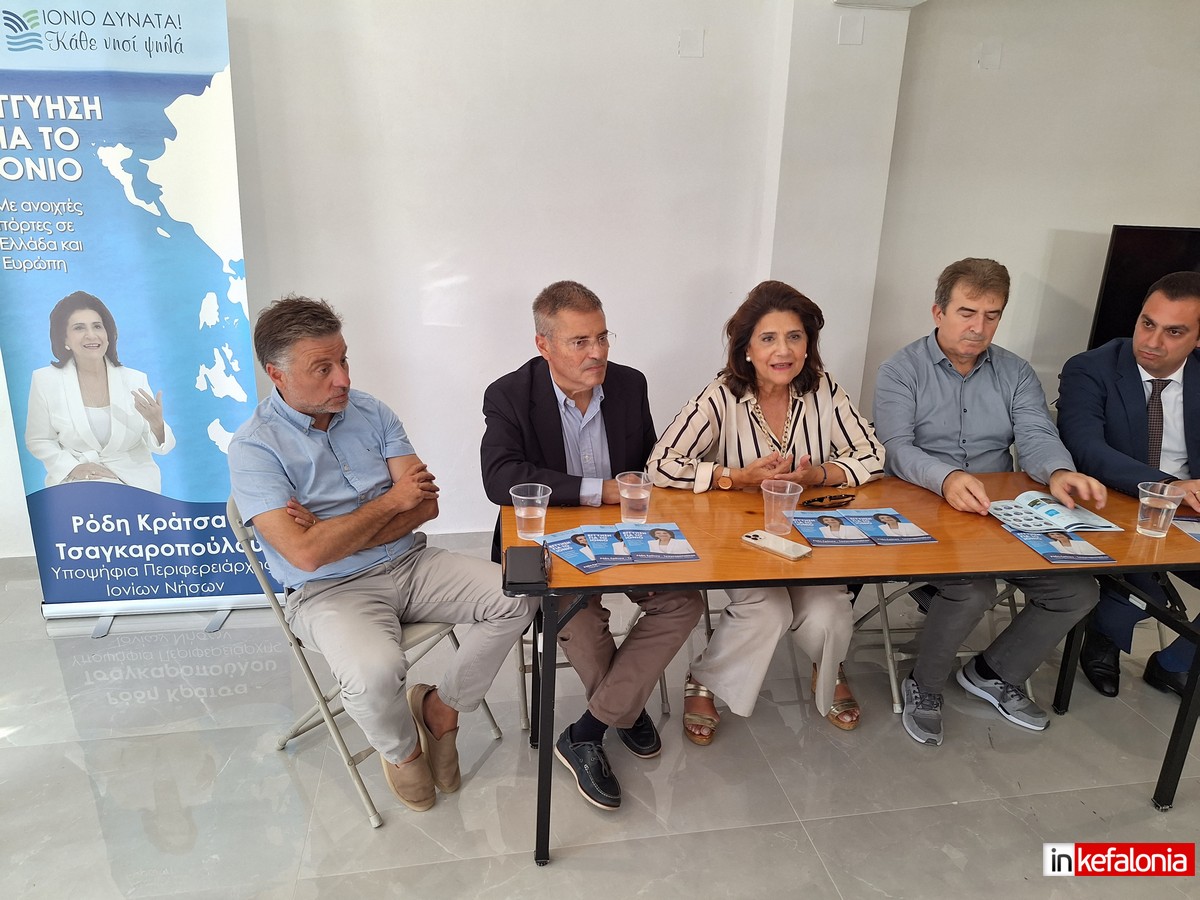 Από την πλευρά της η κα Ρόδη Κράτσα – Τσαγκαροπούλου έκανε μια αναφορά στα πεπραγμένα της στο τιμόνι της Περιφέρειας Ιονίων Νήσων τονίζοντας χαρακτηριστικά ότι ‘’ Θα είμαστε εδώ από την επόμενη μετά την επανεκλογή μας, να εφαρμόσουμε αυτά που δουλέψαμε όλα αυτά τα χρόνια’’.