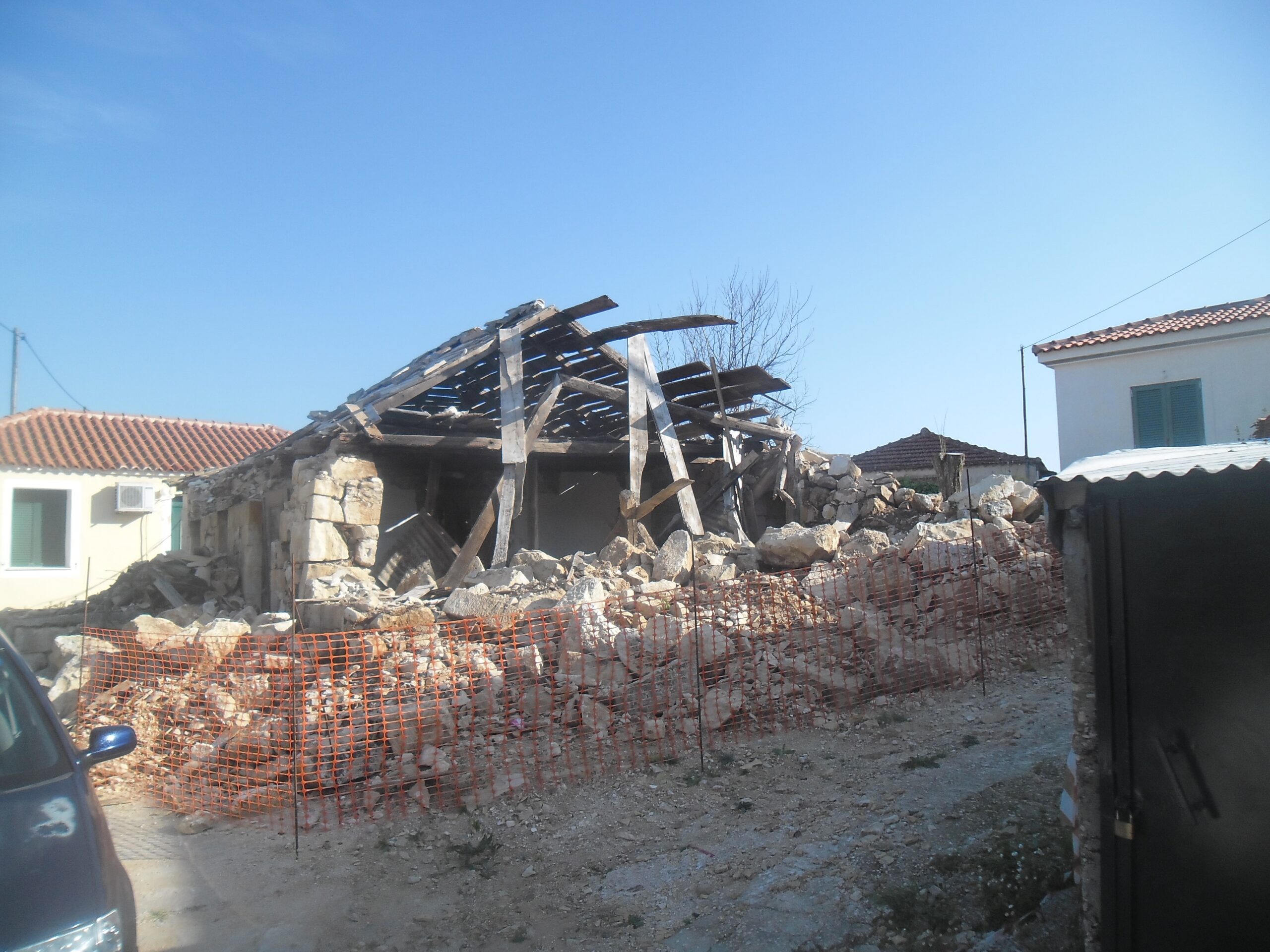 Εικόνα 4 : Χαρακτηριστική εικόνα πέτρινου κτιρίου (προ 1953) στην Παλική λίγο μετά τους σεισμούς του 2014