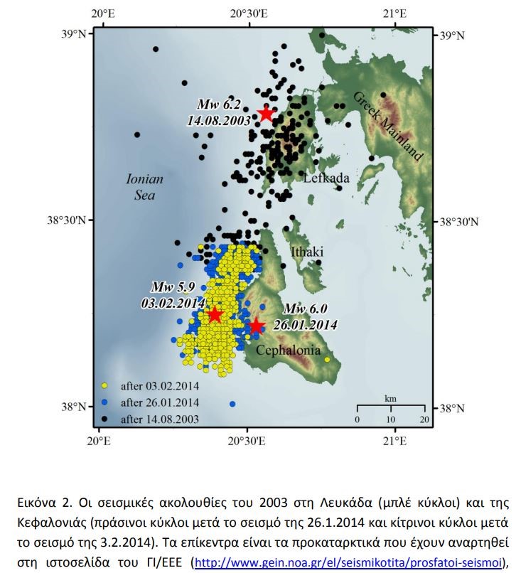 Το απόγευμα της Κυριακής 26/1/2014 στις 4.00μ.μ. μια ισχυρή σεισμική δόνηση μεγέθους 6,1R και λίγο μετά 5,3R και τα ξημερώματα της Δευτέρας 3/2/2014 άλλη μια ισχυρή σεισμική δόνηση μεγέθους 5,9R σημειώθηκαν στην Κεφαλονιά με επίκεντρο τη χερσόνησο της Παλικής σε χερσαία περιοχή, με κύριο χαρακτηριστικό τους το πολύ μικρό εστιακό βάθος (μόλις 5km.) αλλά και την πολύ μεγάλη εδαφική επιτάχυνση (0,77g) που ξεπέρασε κατά πολύ όσα προβλέπονται στον ισχύοντα σήμερα Ελληνικό Αντισεισμικό Κανονισμό (Ζώνη Σεισμικότητας ΙΙΙ – 0,36g).