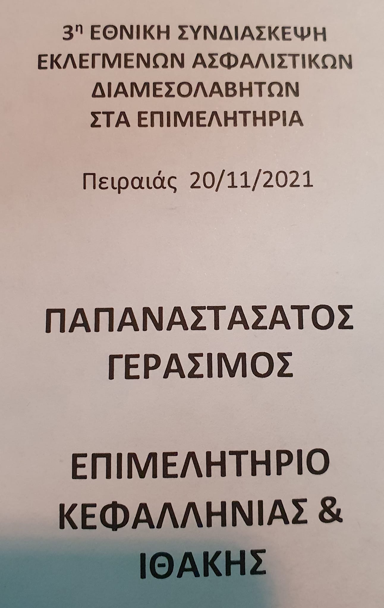 3η ΕΘΝΙΚΗ ΣΥΝΔΙΑΣΚΕΨΗ ΕΚΛΕΓΜΕΝΩΝ ΑΣΦΑΛΙΣΤΙΚΩΝ ΔΙΑΜΕΣΟΛΑΒΗΤΩΝ