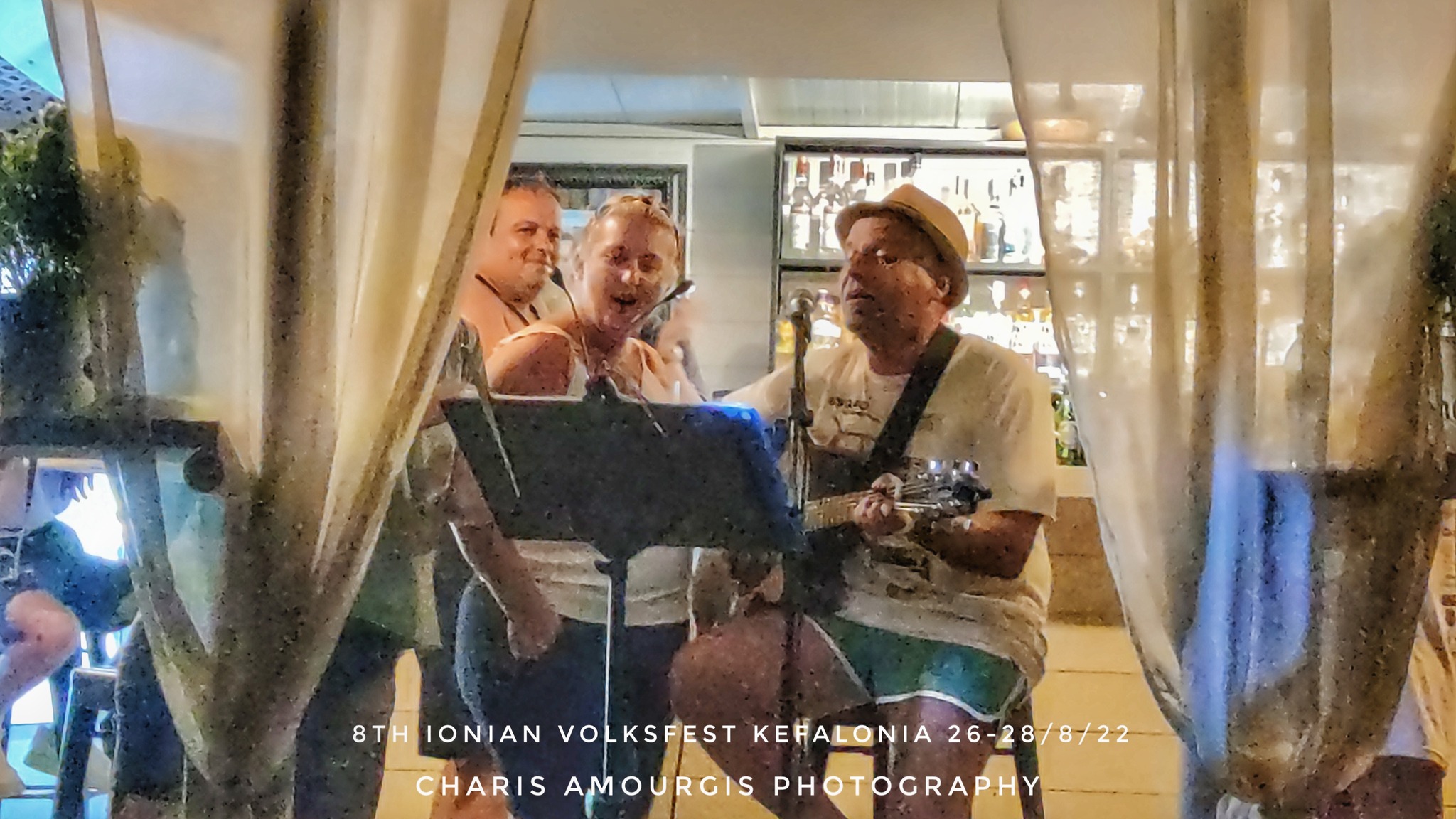 Στο κάμπινγκ Αργοστολίου οι “Whatever”, το δυνατό γκρουπ της Κεφαλονιάς, με τους Κωνσταντίνο Γουλιμή, Γιώργο Αθανασίου, Σταύρο Κουταβά, Λάμπη Πολλάτο και Θεόδωρο Γουλιμή, μας κράτησε συντροφιά με όλα τα είδη μουσικής, από Τζαζ μέχρι ροκ, ρεμπέτικα και Κεφαλονίτικες καντάδες.