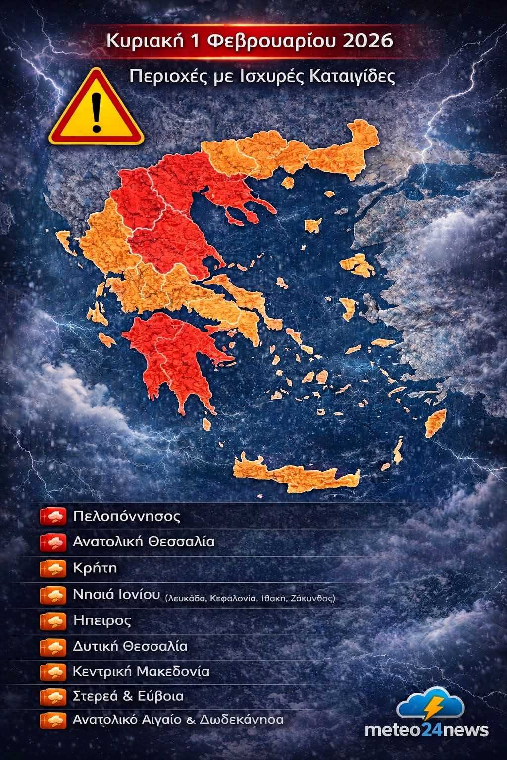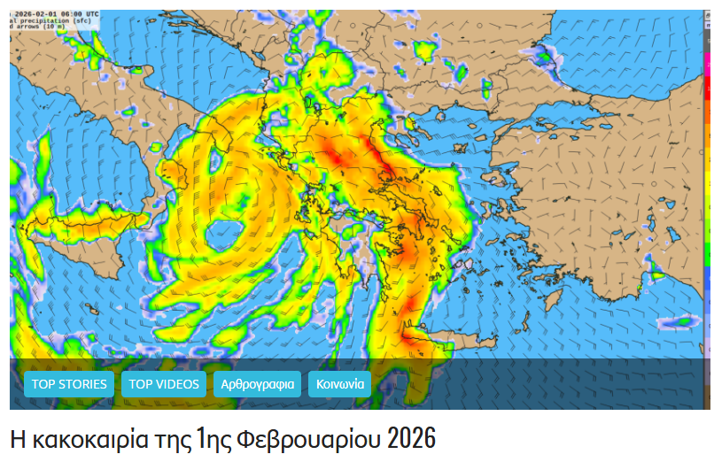 Παρακαλώ την προσοχή στίς μετακινήσεις σας για αύριο Κυριακή 1 Φεβρουαρίου 2026 λόγω των έντονων καιρικών φαινομένων .
