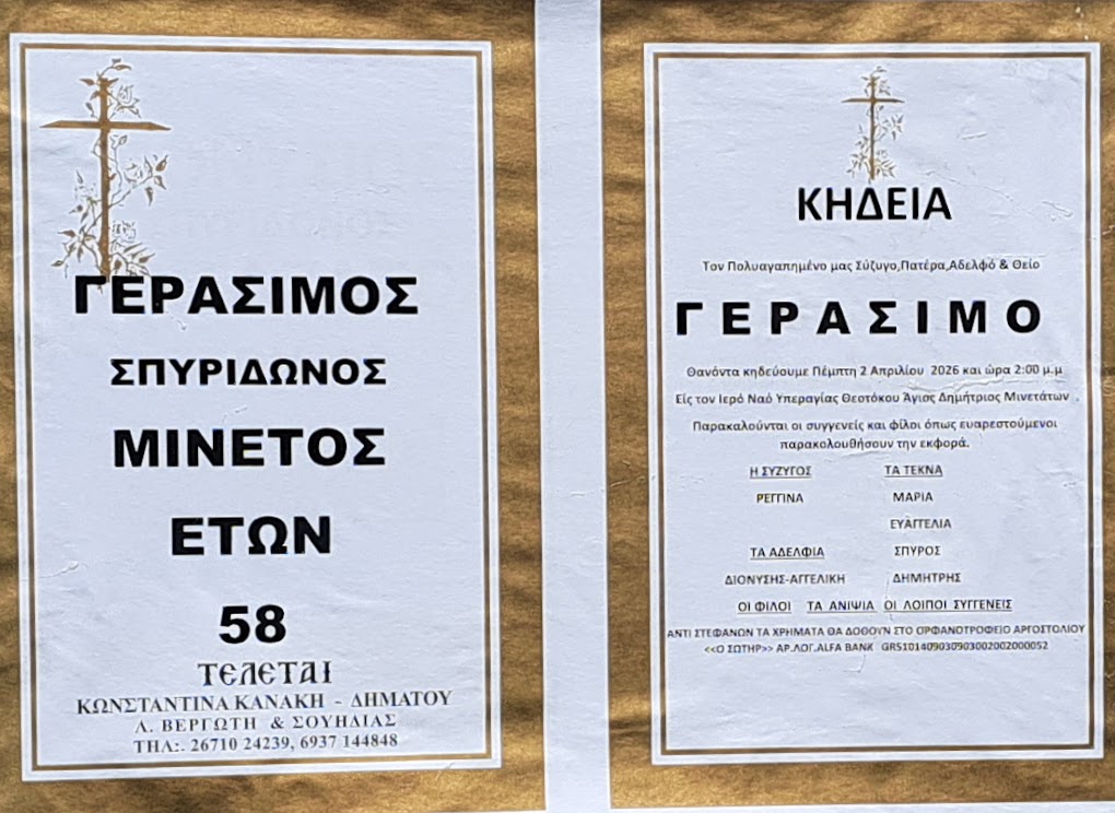 Εφυγε από την Ζωή ο Γεράσιμος Μινέτος