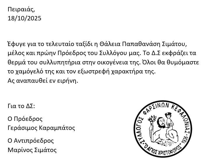 Έφυγε η Θάλεια Παπαθανάση Σιμάτου