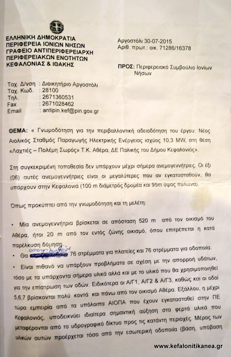 Για όλους τους παραπάνω λόγους η Περιφερειακή Ενότητα Κεφαλονιάς έχει γνωμοδοτήσει αρνητικά όμως και πάλι, αυτό δεν παίζει κανένα ρόλο αφού η γνωμοδότησή της δεν είναι δεσμευτική.