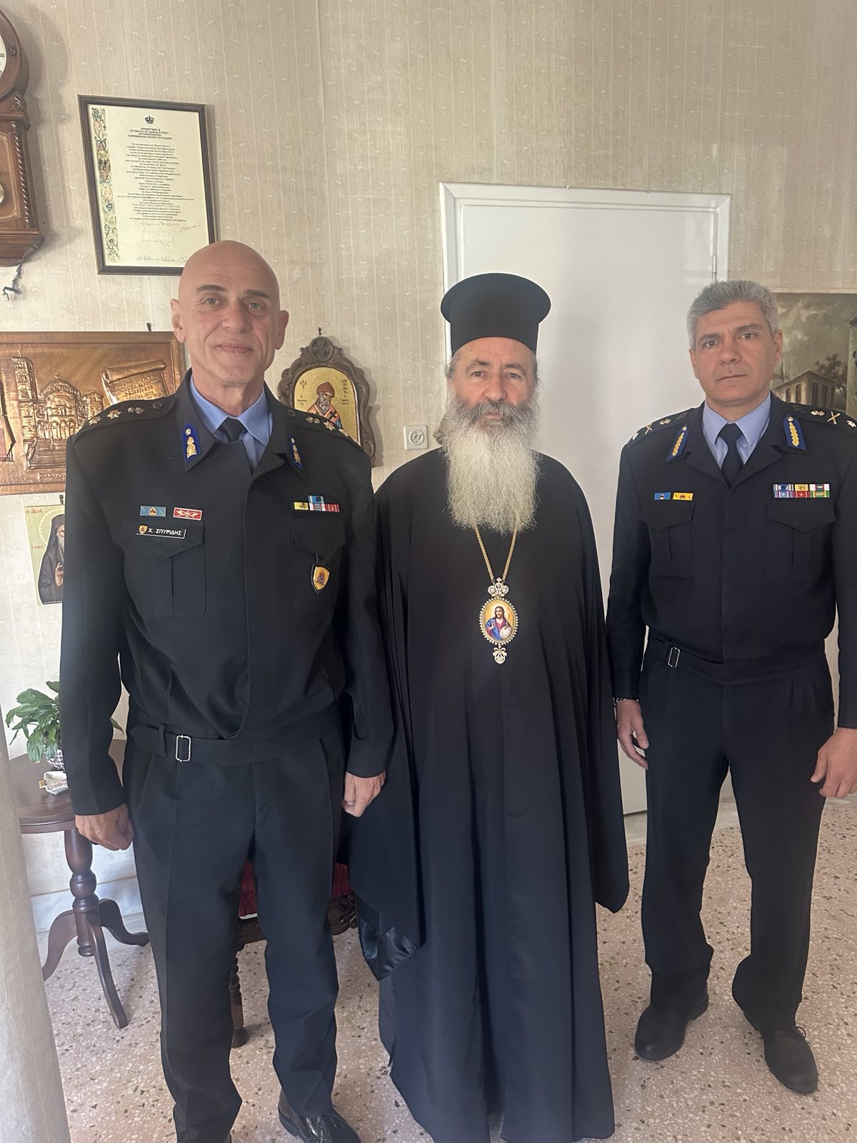 Στα πλαίσια της επίσκεψης του Διοικητή ΠΕ.ΠΥ.Δ. Ιονίων Νήσων Αρχιπύραρχου Θεοδωράκου Νεκτάριου στο νησί της Κεφαλλονιάς με σκοπό τη πραγματοποίηση συσκέψεων και συναντήσεων με τους τοπικούς φορείς ενόψει της επικείμενης αντιπυρικής περιόδου πραγματοποιήθηκε συνάντηση του ανωτέρω με τον σεβασμιότατο Μητροπολίτη Κεφαλληνίας κκ Δημήτριο παρουσία του Διοικητή ΔΙ.ΠΥ.Ν. Κεφαλληνίας Πύραρχου Σπυρίδη Χρήστου.