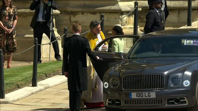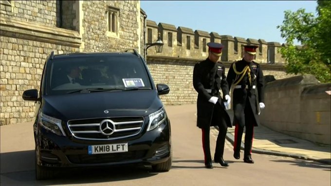 Και η ώρα περνούσε και όλοι περίμεναν την άφιξη του Πρίγκιπα Χάρι ο οποίος έφτασε συνοδευόμενος από τον αδερφό και κουμπάρο του τον Πρίγκιπα Γουίλιαμ. Και οι δυο ντυμένοι με στρατιωτικές στολές αφού προηγουμένως είχαν ζητήσει την άδεια της Βασίλισσας. Ταυτόχρονα η Μέγκαν αναχωρούσε από το ξενοδοχείο όπου είχε καταλύσει το προηγούμενο βράδυ μαζί με την μητέρα της.