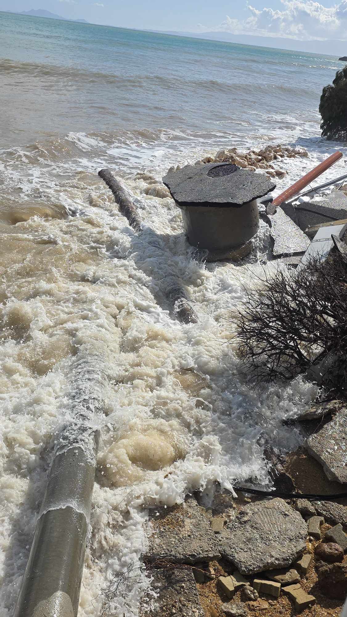 Δεν Εχει γίνει καμία προσπάθεια παρέμβασης στον αγωγο του βιολογικού γιατί δεν Εχει ηρεμήσει η θαλασσα όπως θα δείτε στα βίντεο που μου έστειλαν οι κάτοικοι της περιοχής φαίνεται πεντακάθαρα ότι θα παρει αρκετο χρόνο να αποκατασταθεί ο βιολογικος.