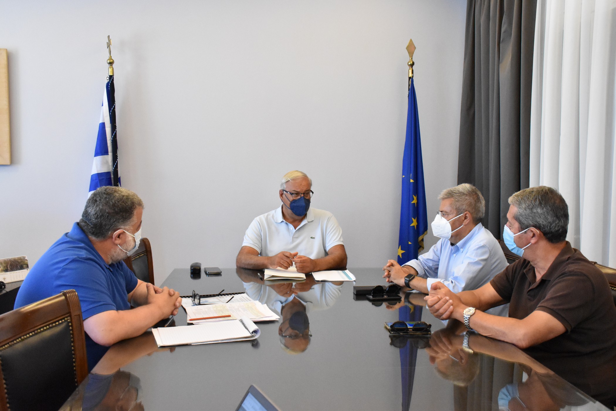 Ο κ. Σταυριανουδάκης, έφτασε στο Δημαρχείο συνοδευόμενος από τον Βουλευτή Κεφαλονιάς και Ιθάκης κ. Παναγή Καππάτο και εκεί τον περίμεναν ο Δήμαρχος Αργοστολίου κ. Θεόφιλος Μιχαλάτος, οι Αντιδήμαρχοι κ. Γιώργος Τσιλιμιδός και κ. Διονύσης Μινέτος και ο ειδικός συνεργάτης του Δημάρχου κ. Χαράλαμπος Τουμάσης.